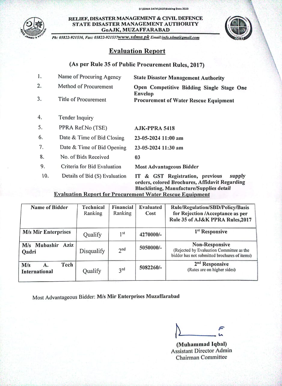 22-05-2024 | 06-06-2024 | Close | C&W | Highways Division Muzaffarabad | Download File