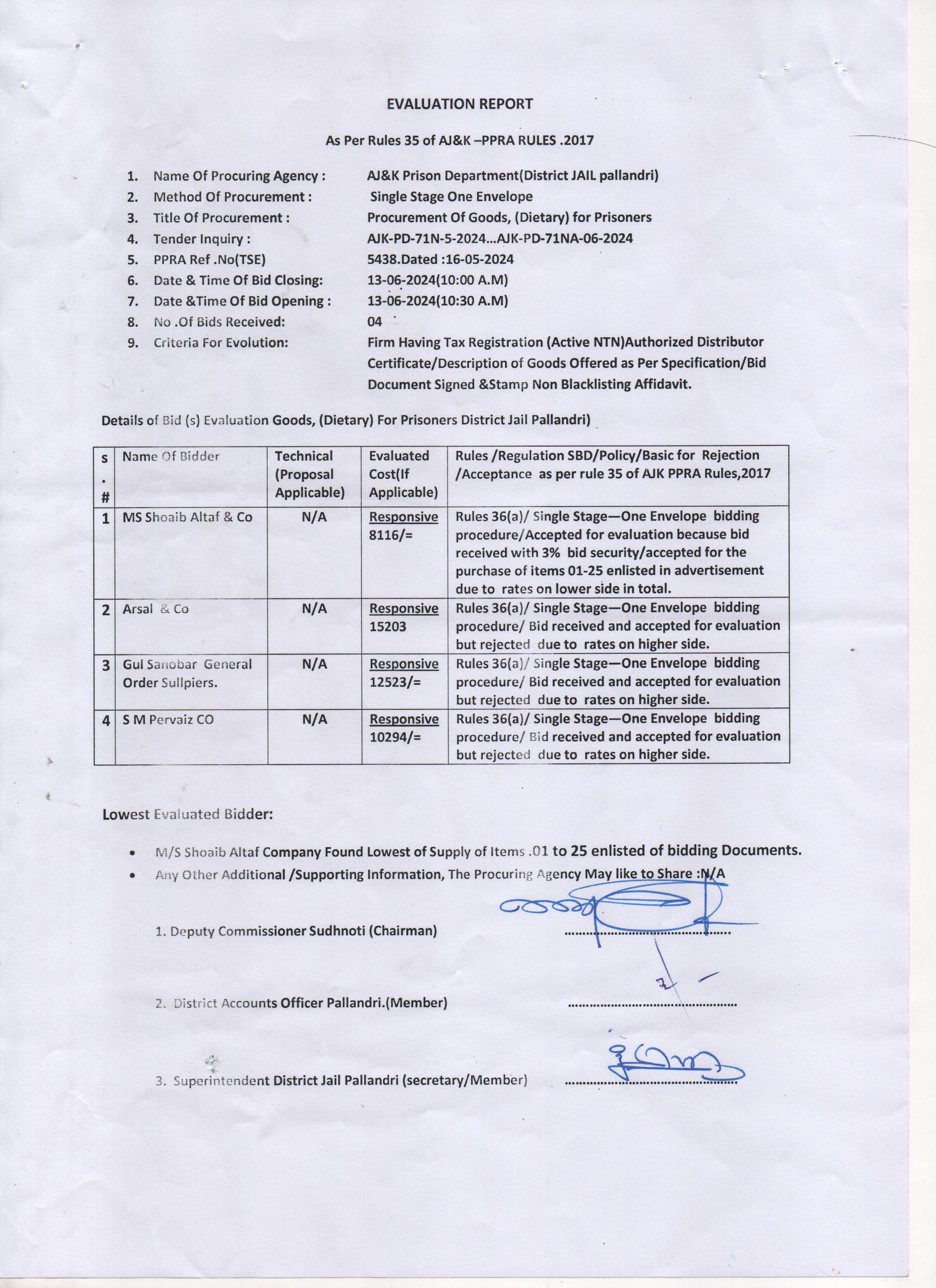 Procurement of Goods(District Jail Bhimber) |