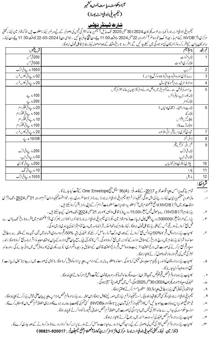 08-05-2024 | 22-05-2024 | Close | Development Authorities | Neelum Valley Development Board | Download File |