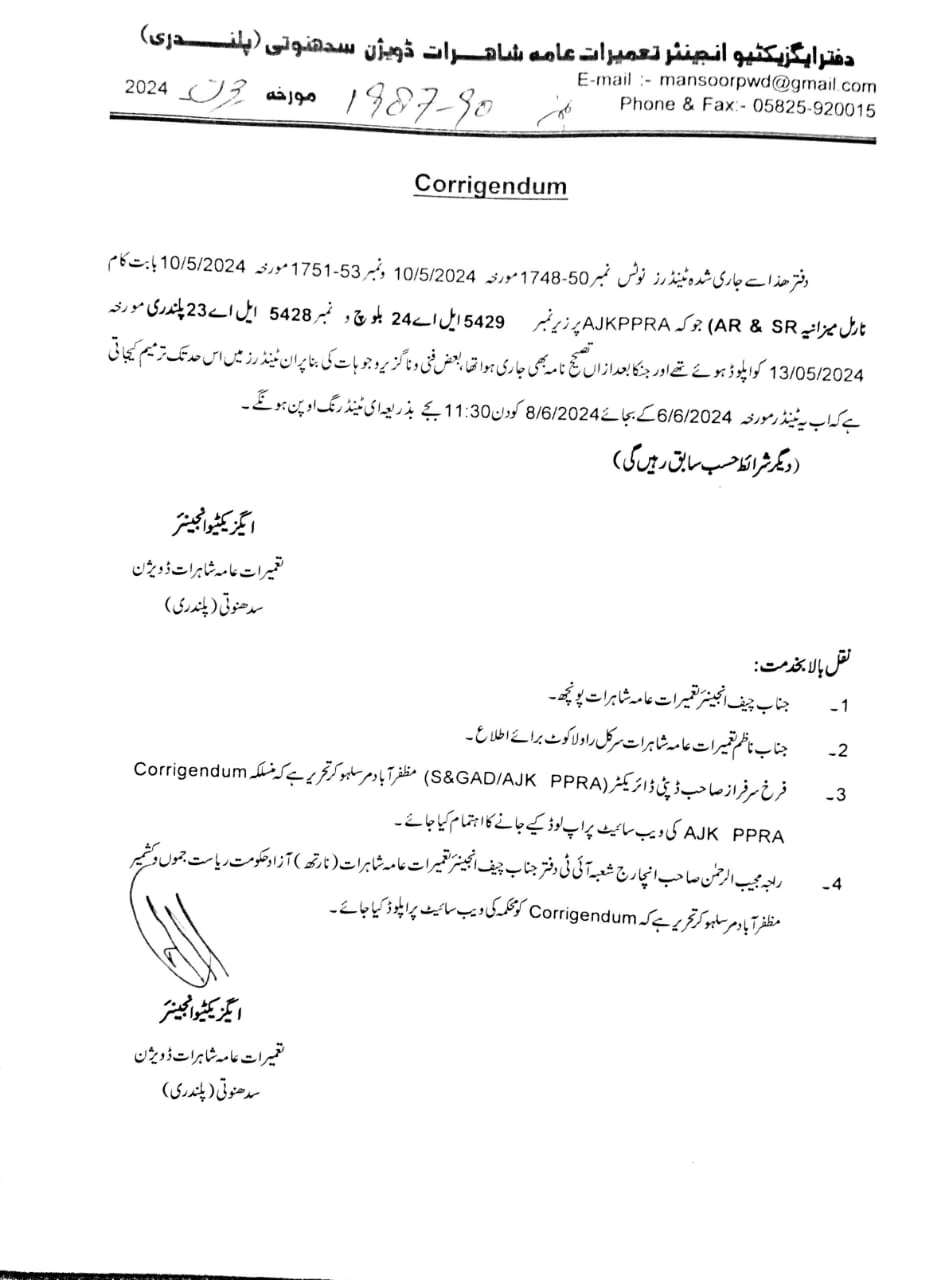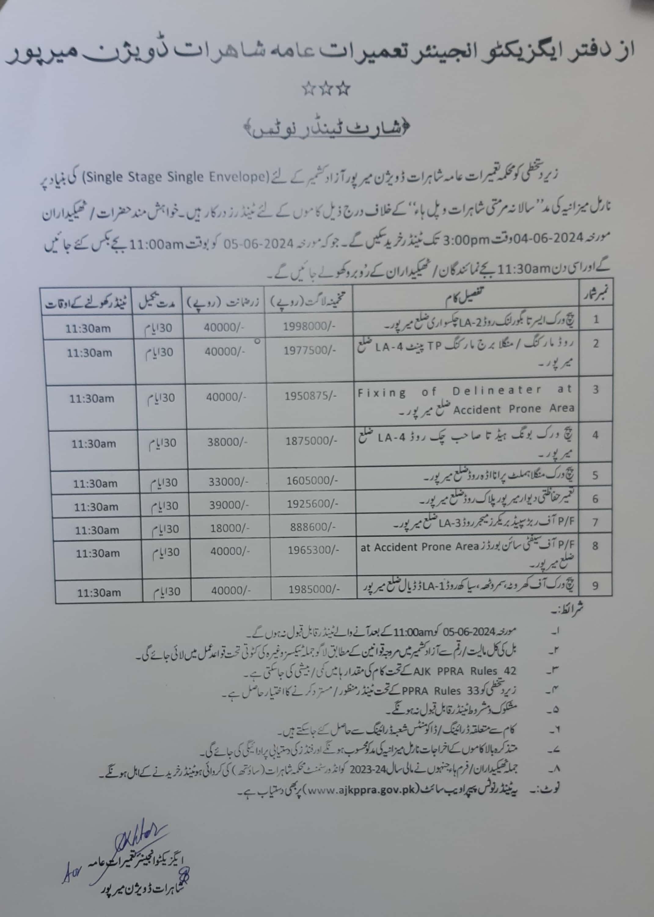 08-05-2024 | 28-05-2024 | Close | C&W | Highways Division Muzaffarabad | Download File