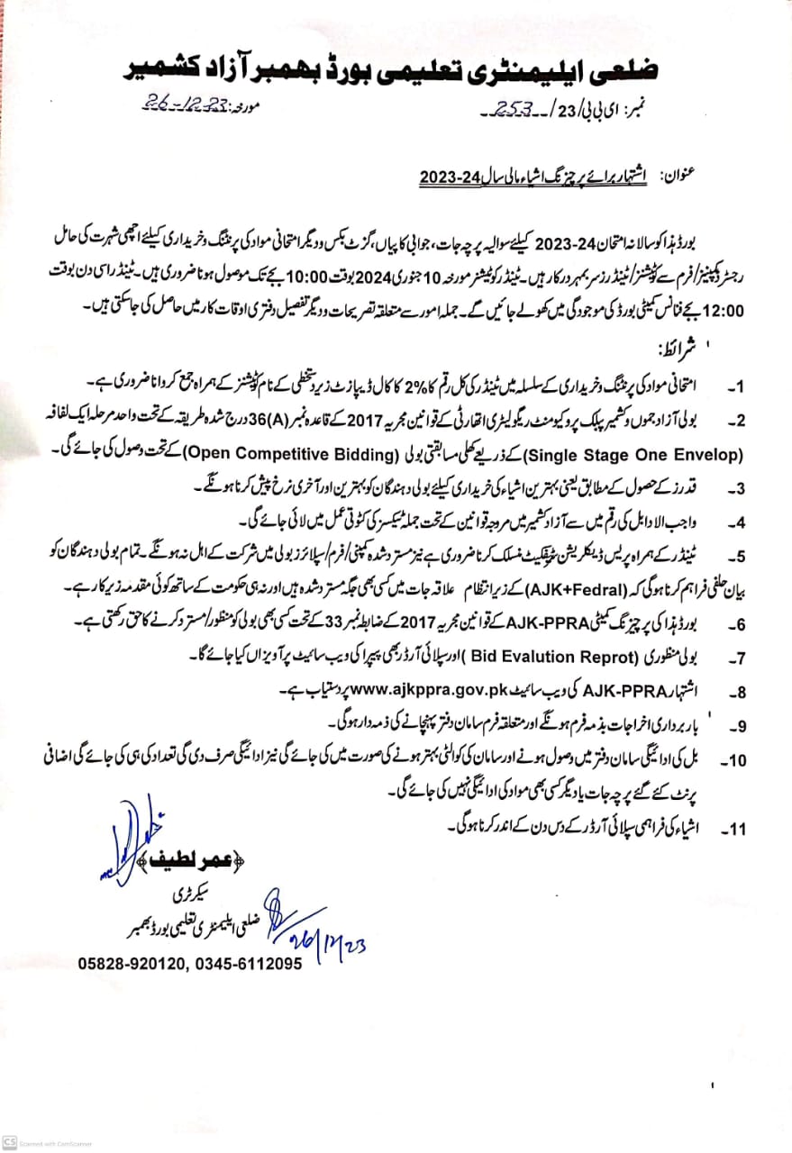 26-12-2023 | 10-01-2024 | Close | Education Department | Elementary Education Board Bhimber | Download File |
