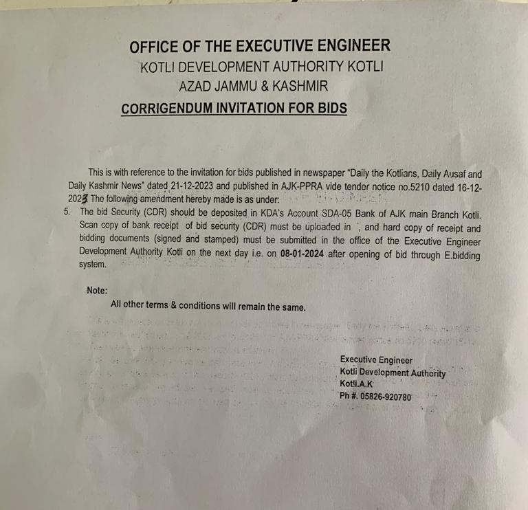 16-12-2023 | 06-01-2024 | Close | Development Authorities | Kotli Development Authority | Download File