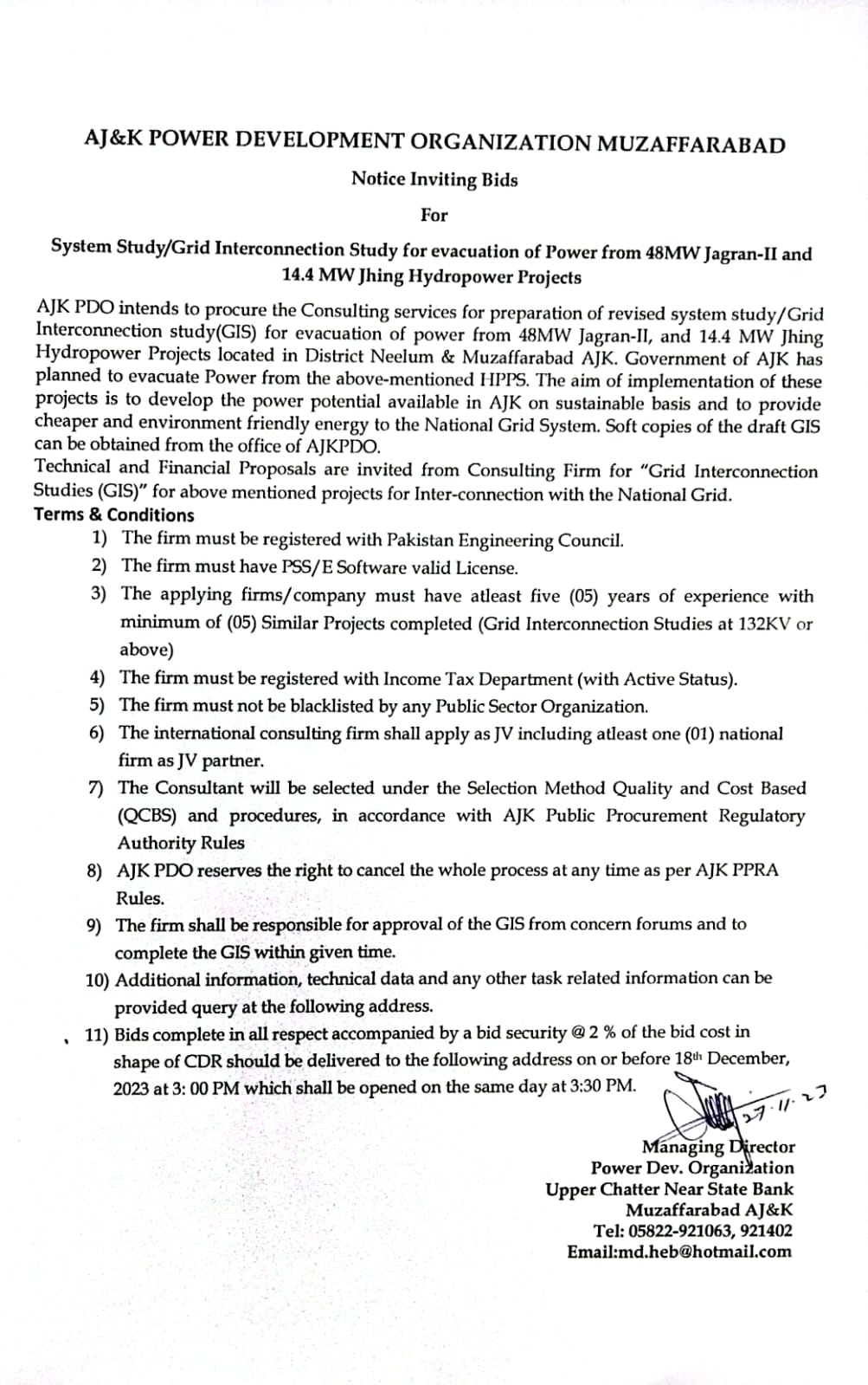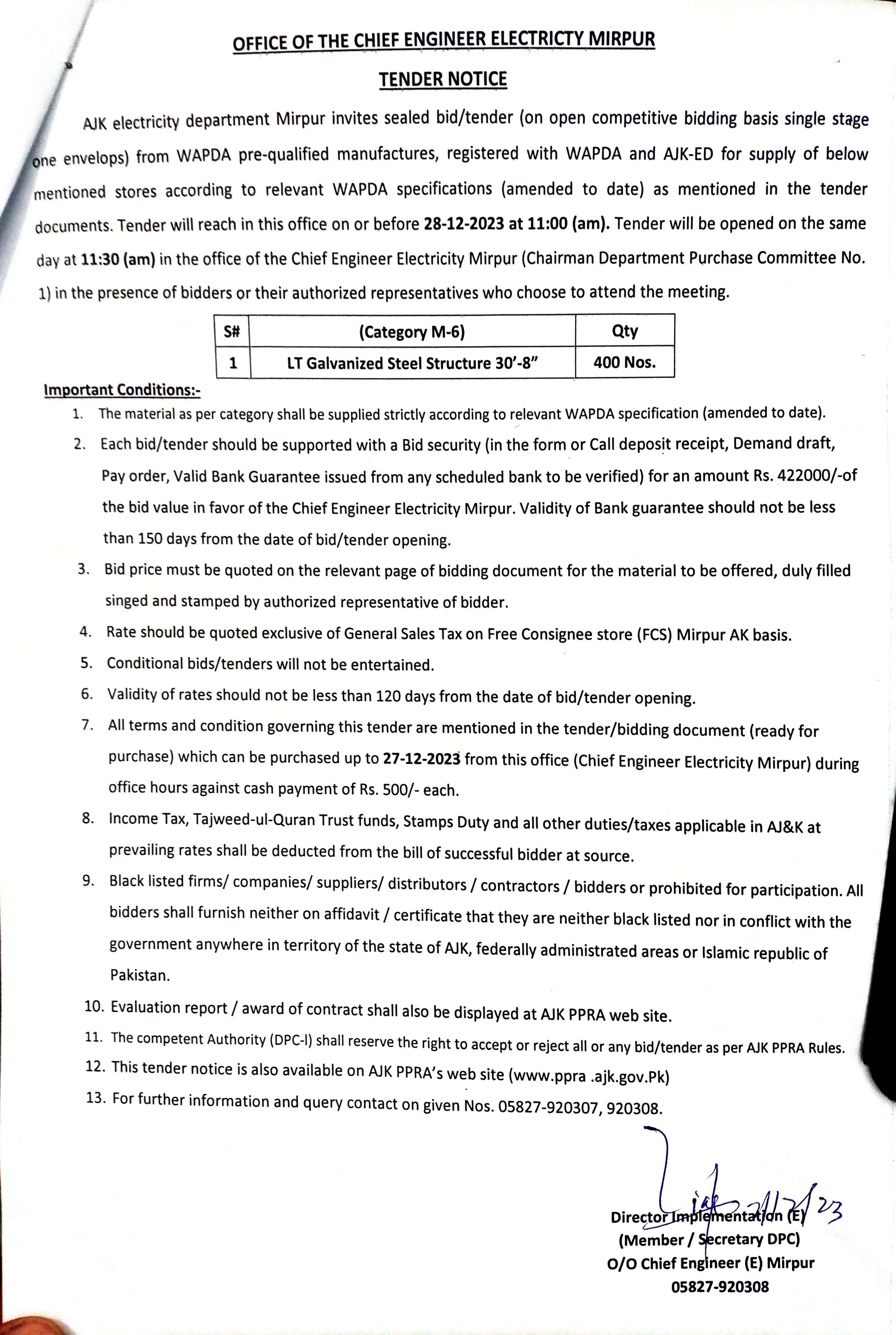 05-12-2023 | 21-12-2023 | Close | Energy and Water Resource | Electricity Muzaffarabad | Download File