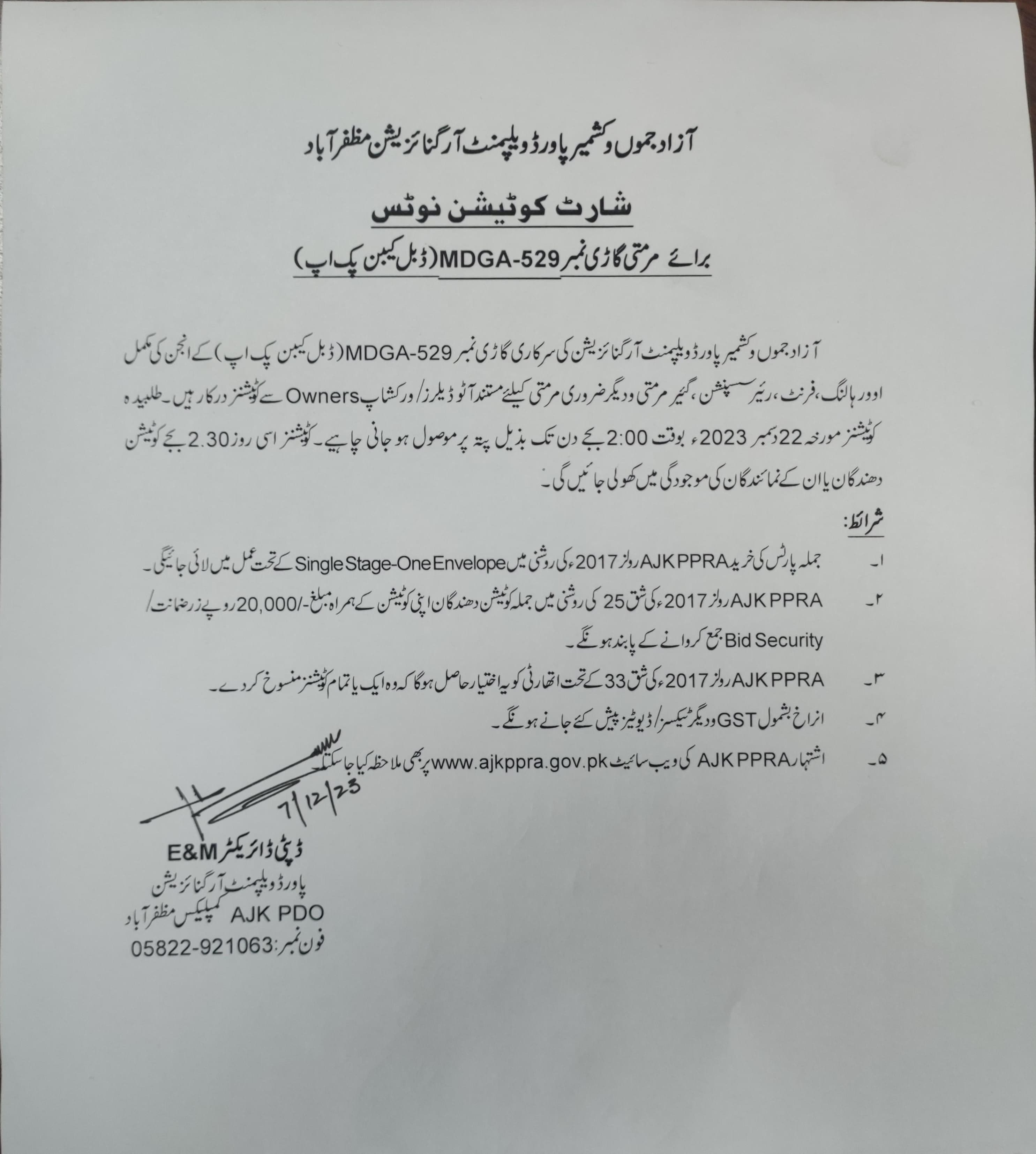 07-12-2023 | 22-12-2023 | Close | AJK PDO | PDO Muzaffarabad | Download File |
