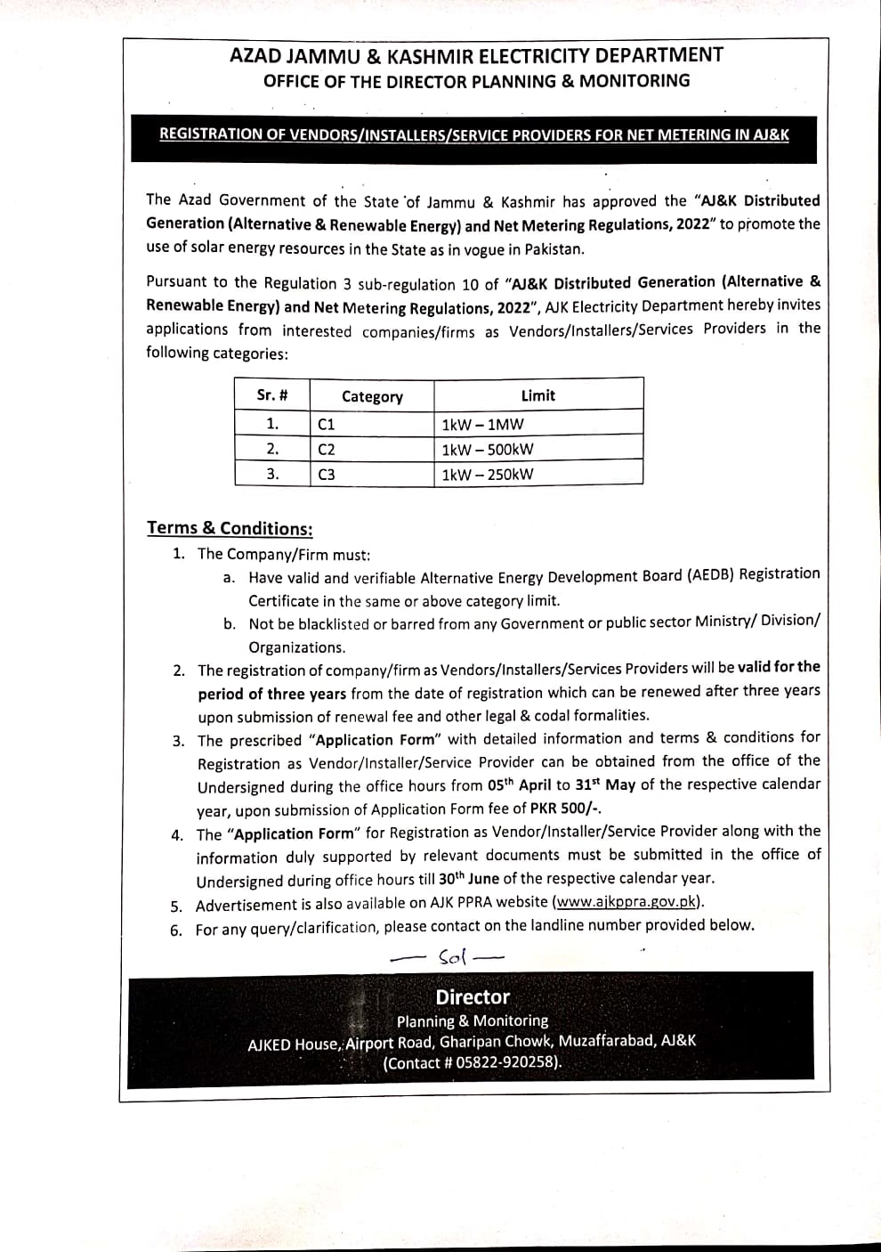 04-04-2023 | 30-06-2023 | Close | Energy and Water Resource | Electricity Muzaffarabad | Download File |