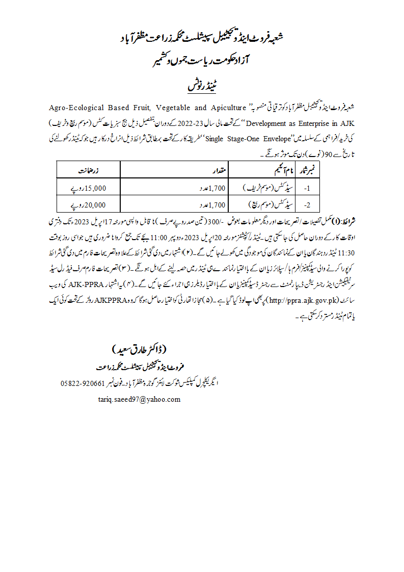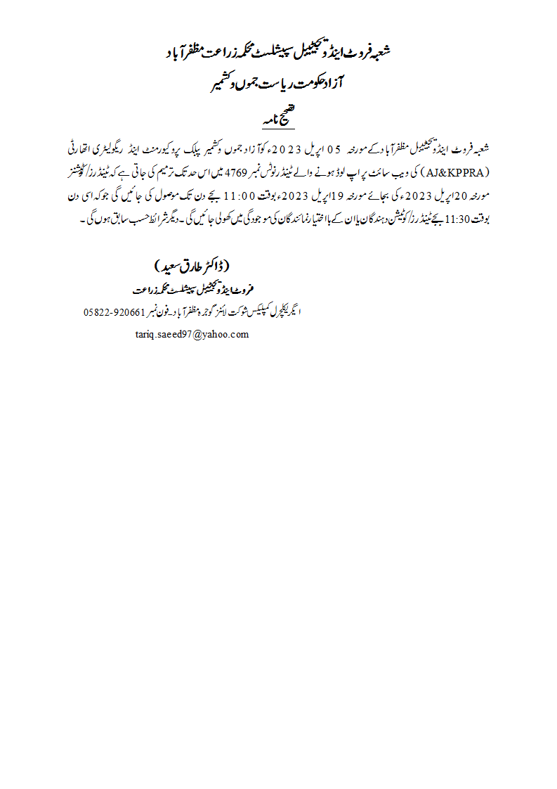 05-04-2023 | 19-04-2023 | Close | Agriculture | Agriculture Muzaffarabad | Download File