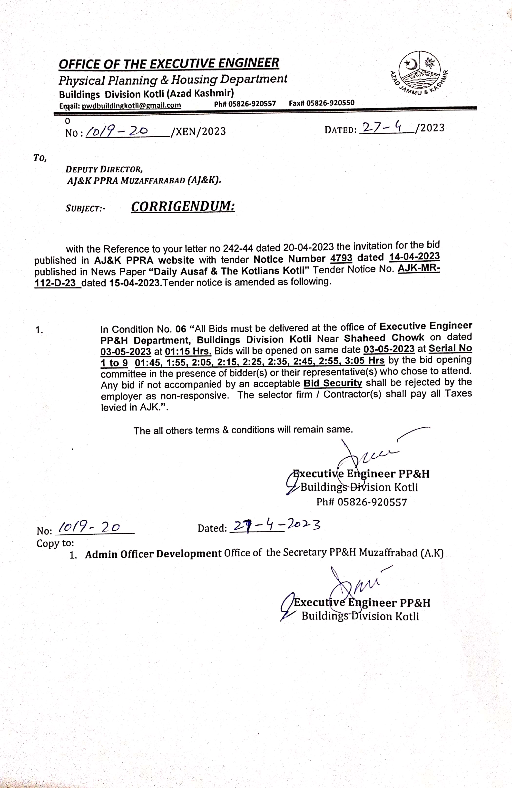 11-04-2023 | 23-05-2023 | Close | C&W | Highways Division Rawalakot | Download File