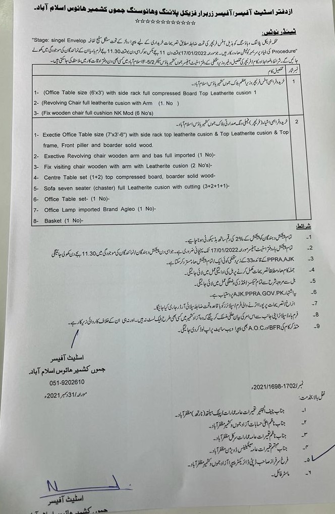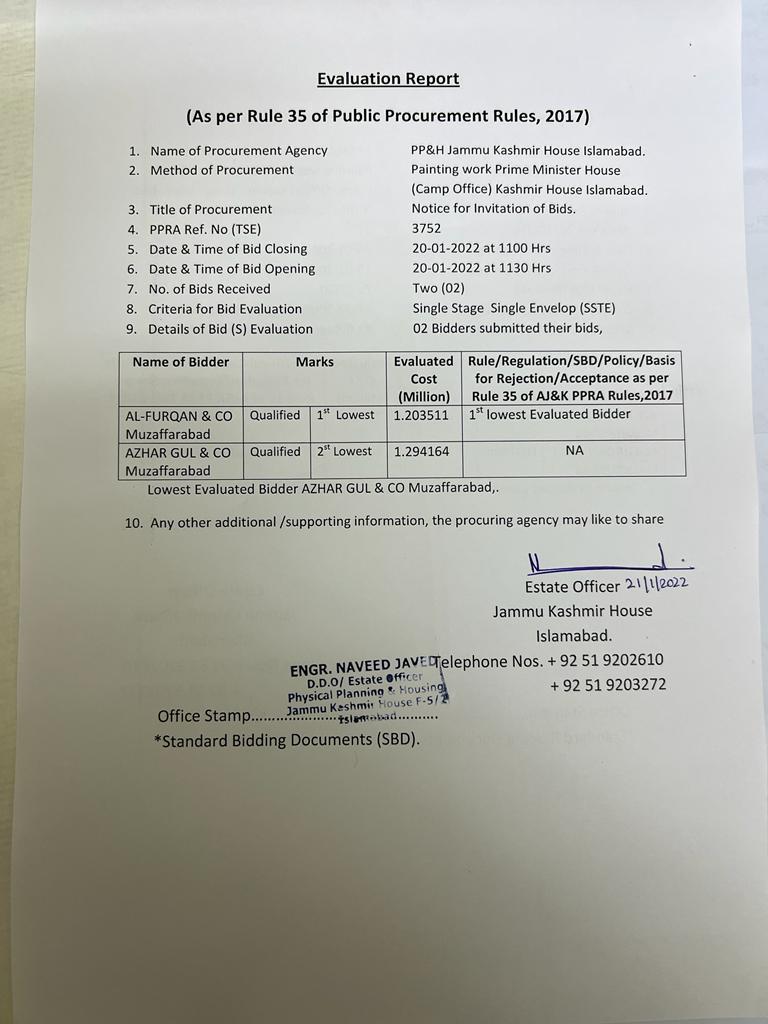 31-12-2021 | 17-01-2022 | Close | PP&H | Kashmir House Islamabad | Download File