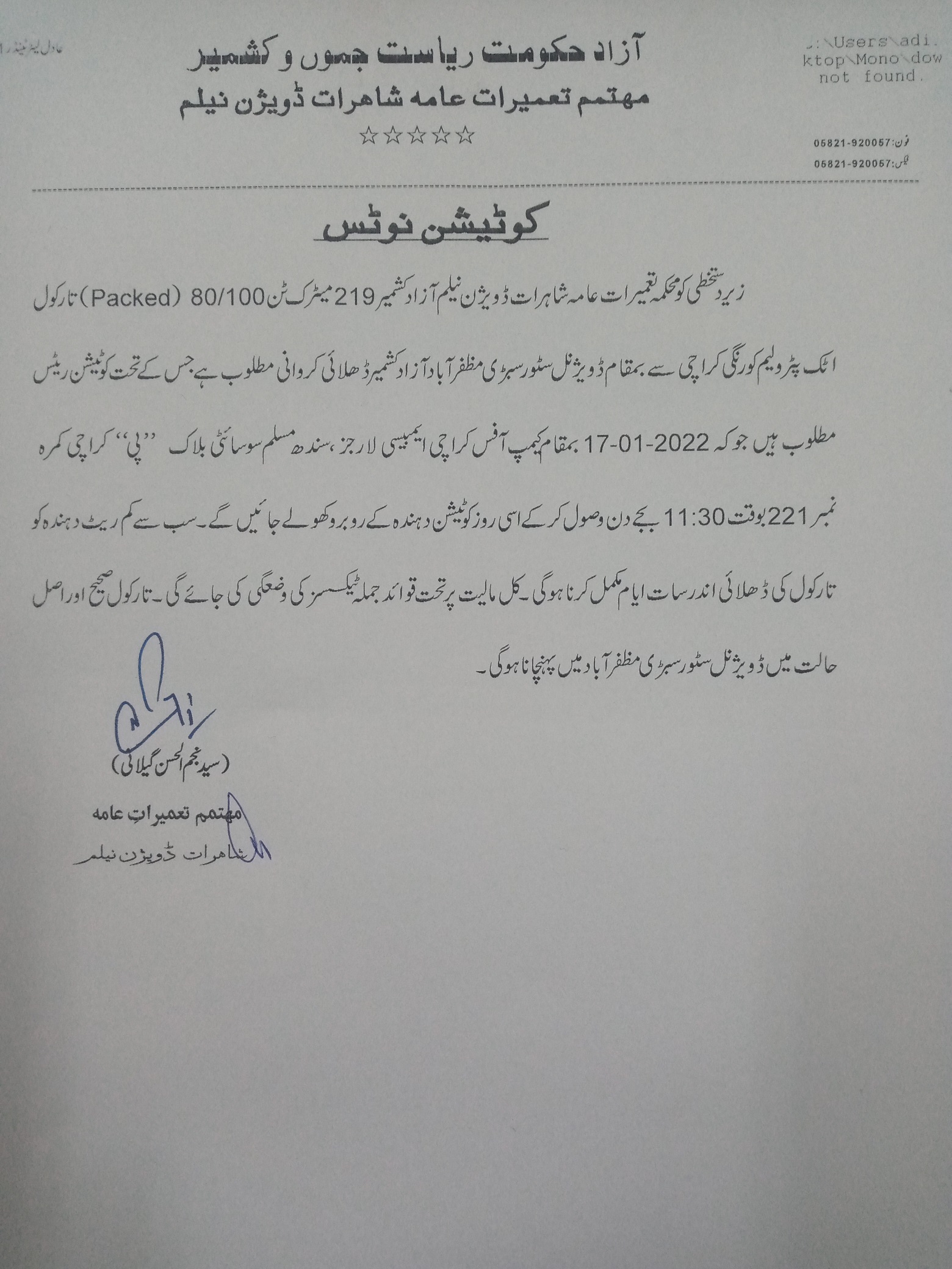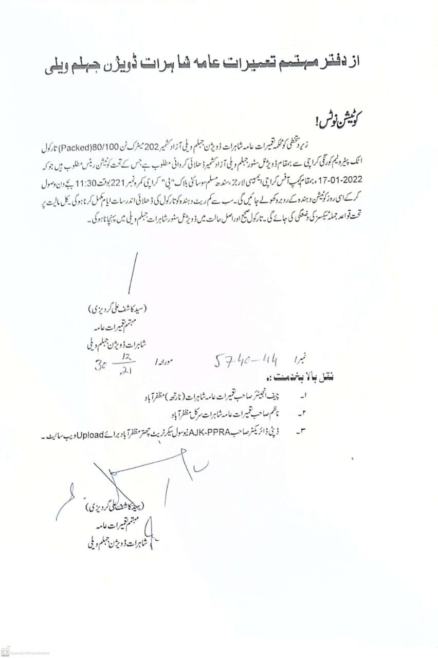 28-12-2021 | 12-01-2022 | Close | C&W | Highways Division Muzaffarabad | Download File |