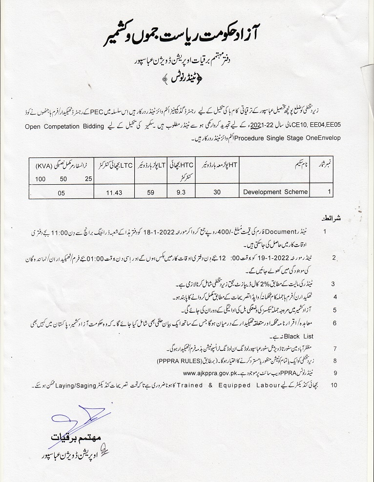 31-12-2021 | 17-01-2022 | Close | Energy and Water Resource | Electricity Muzaffarabad | Download File
