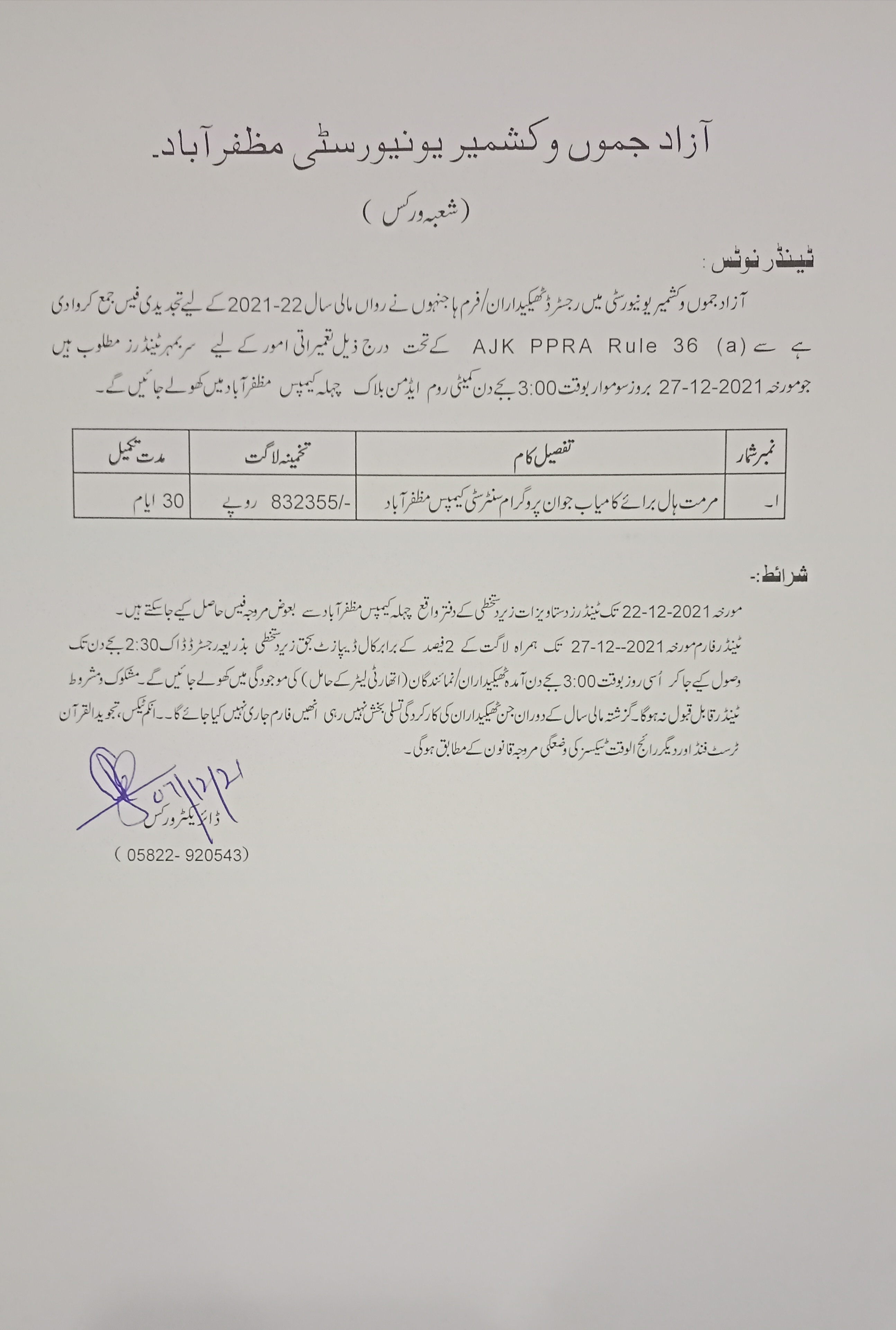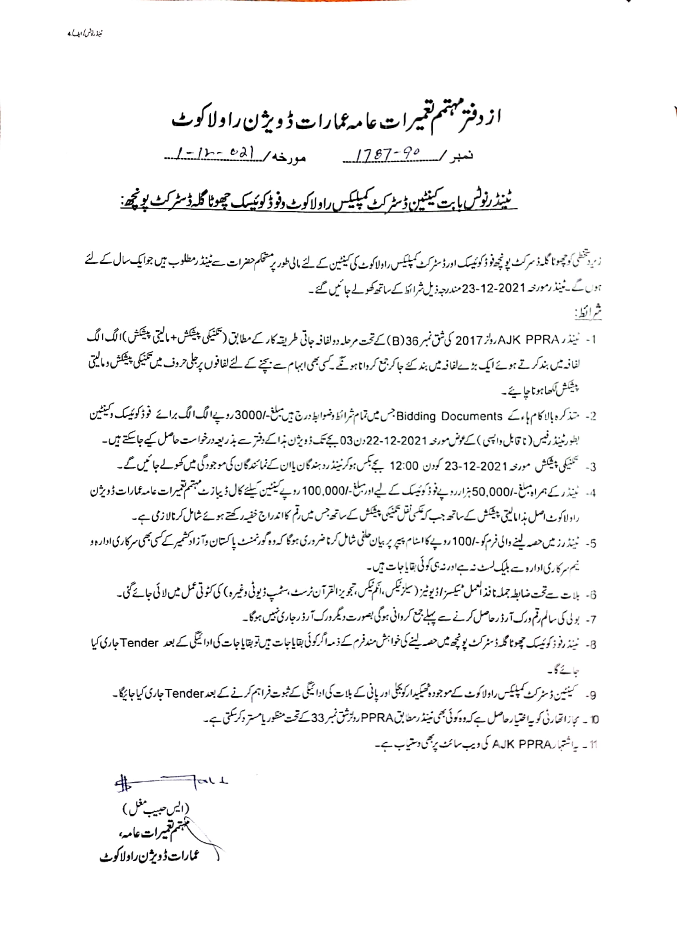 03-12-2021 | 18-12-2021 | Close | Corporations | Municipal Corporation Muzaffarabad | Download File |