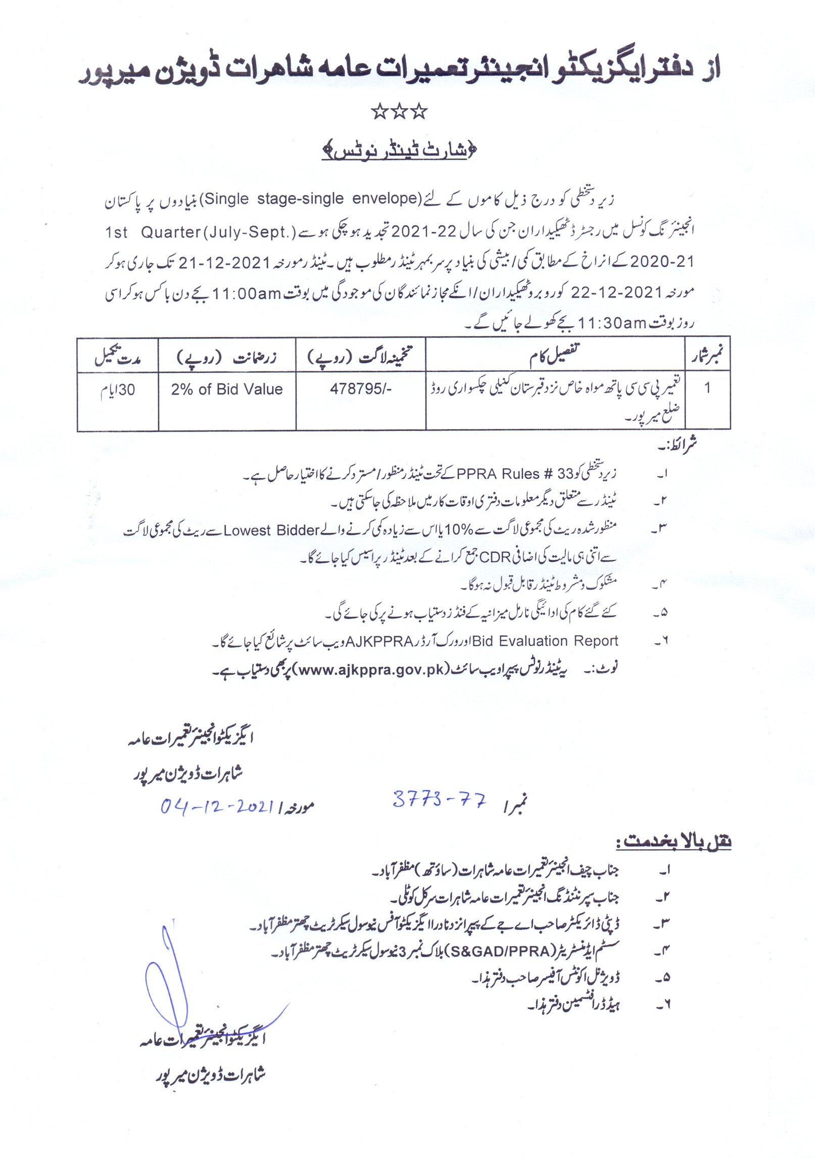 09-12-2021 | 25-12-2021 | Close | C&W | Highways Division Muzaffarabad | Download File |
