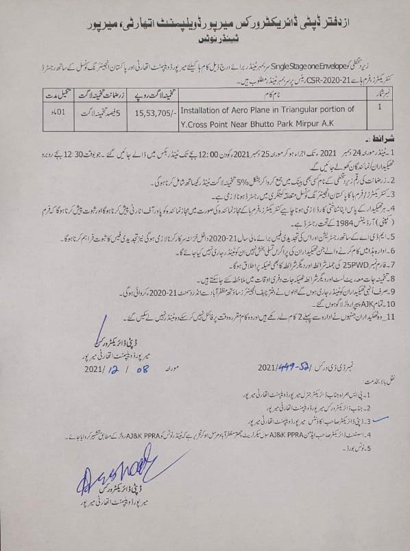 10-12-2021 | 25-12-2021 | Close | Development Authorities | Mirpur Development Authority | Download File |
