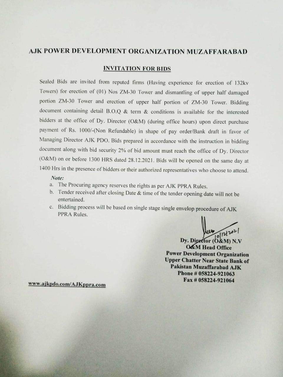 10-12-2021 | 28-12-2021 | Close | AJK PDO | PDO Muzaffarabad | Download File |