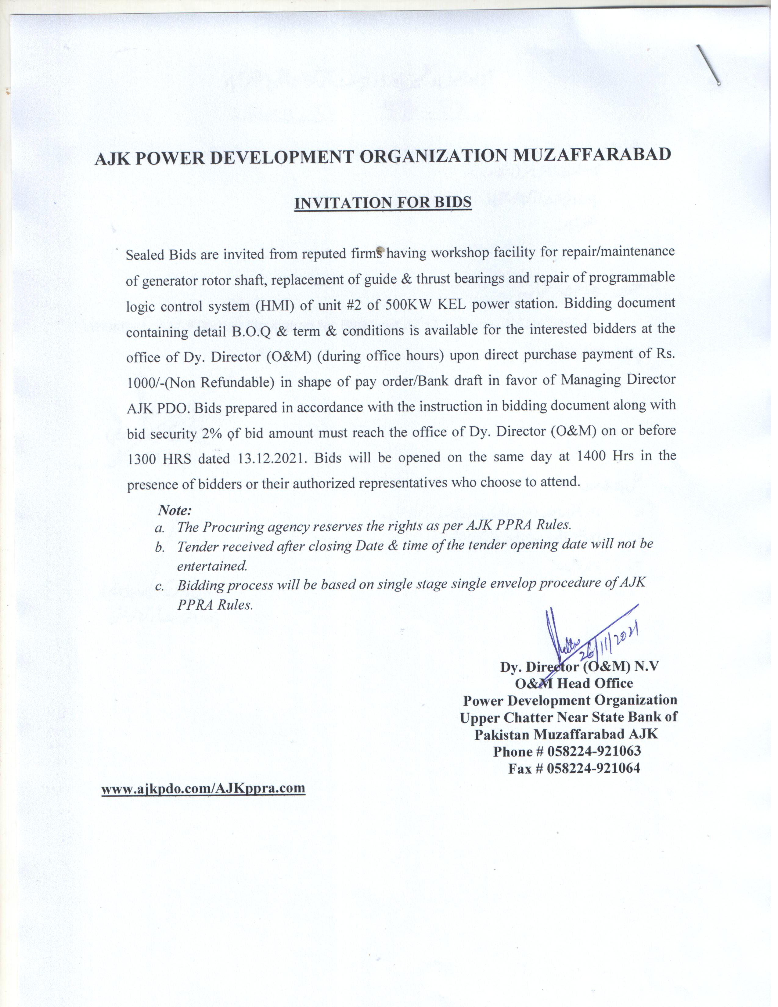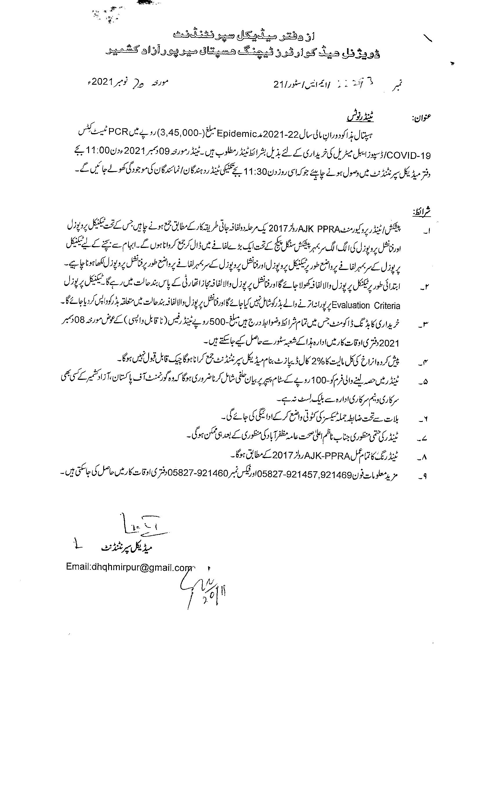19-11-2021 | 09-12-2021 | Close | PP&H | PP&H Kotli | Download File |