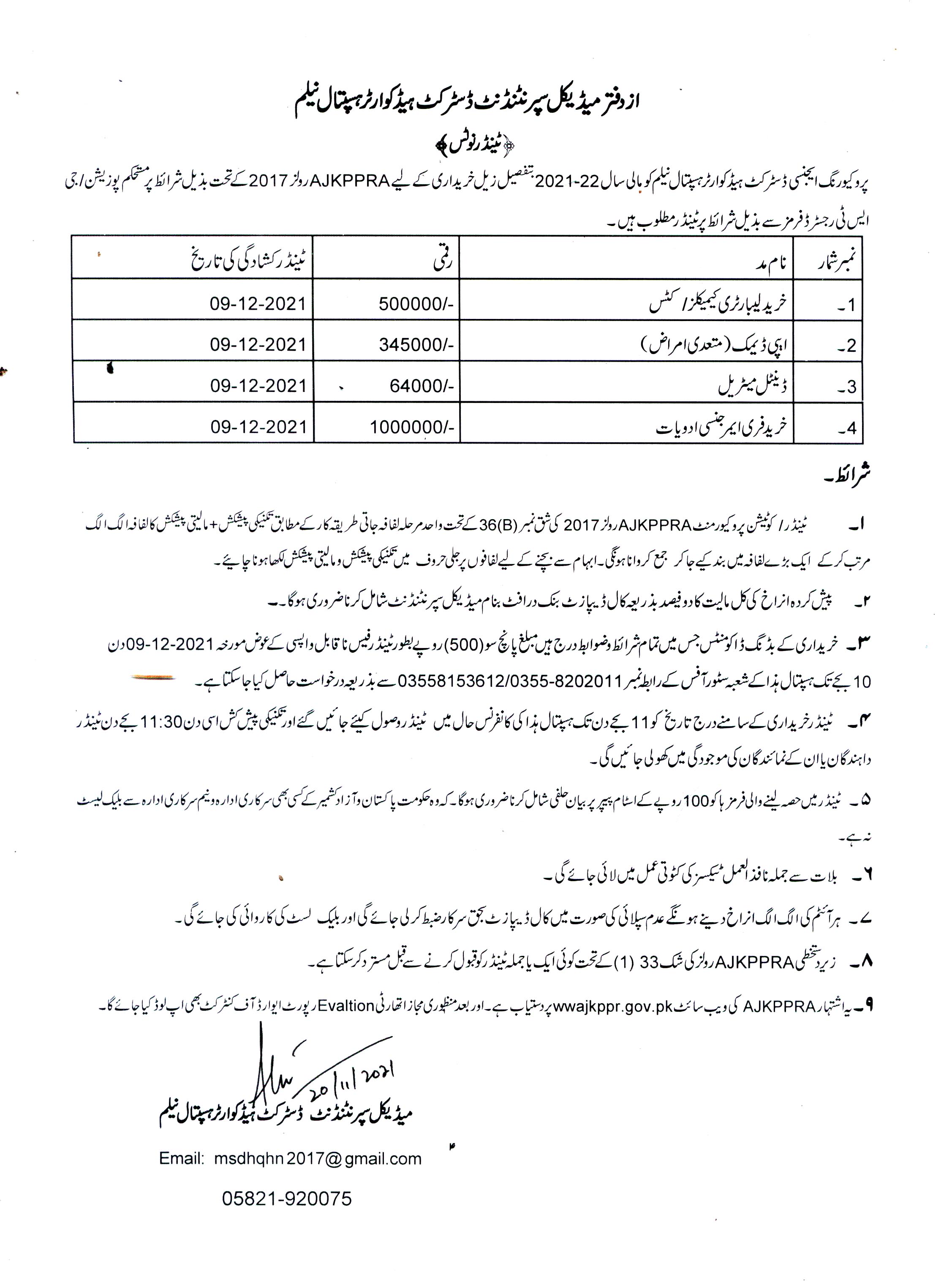 30-11-2021 | 15-12-2021 | Close | Agriculture | Live Stock Muzaffarabad | Download File