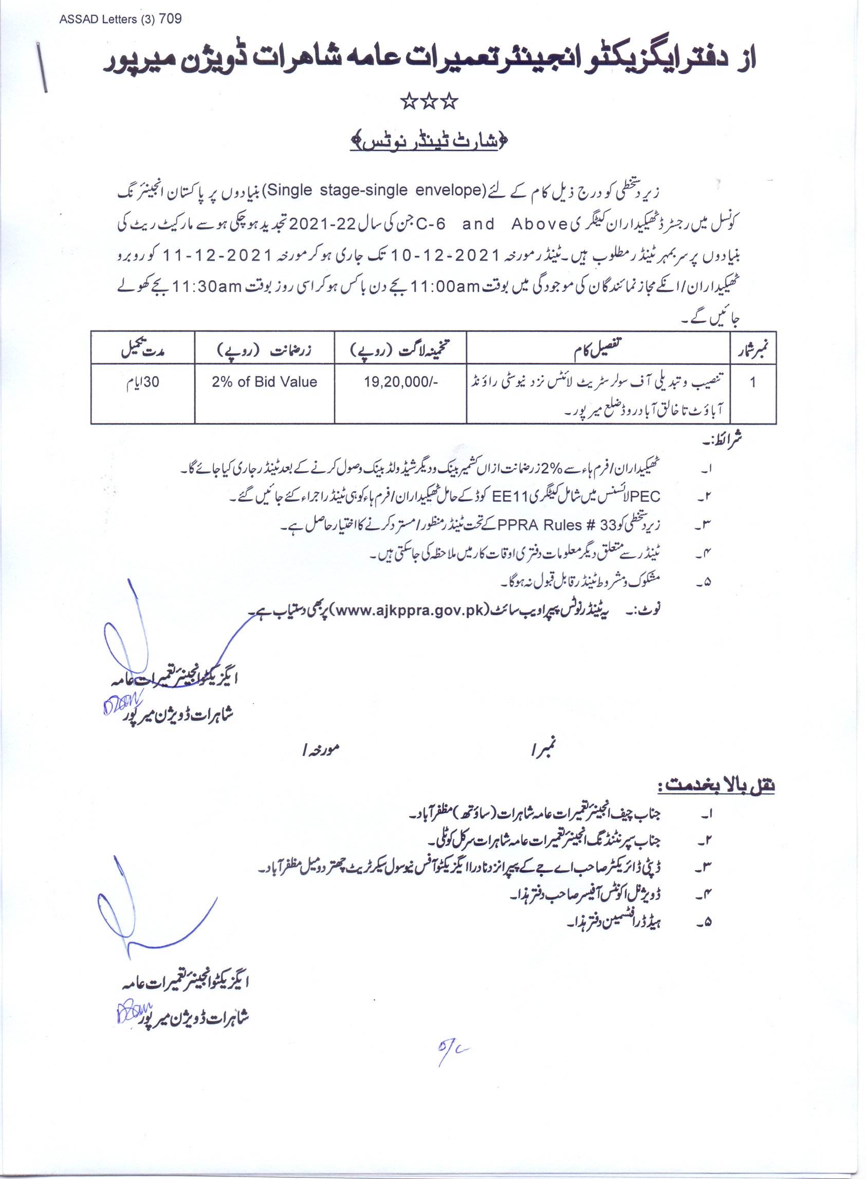 22-11-2021 | 07-12-2021 | Close | C&W | Highways Division Muzaffarabad | Download File