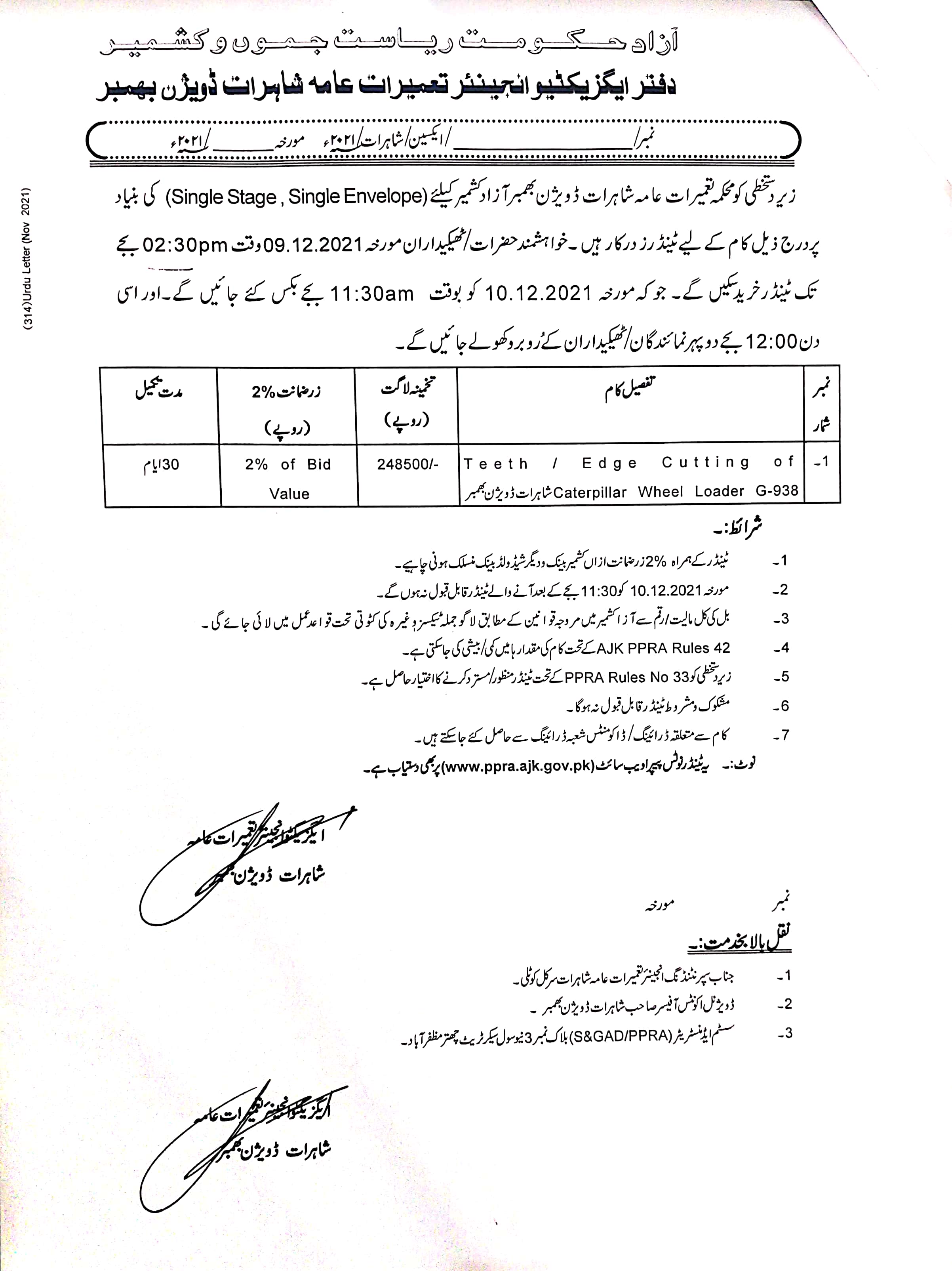 26-11-2021 | 10-12-2021 | Close | C&W | Highways Division Muzaffarabad | Download File |
