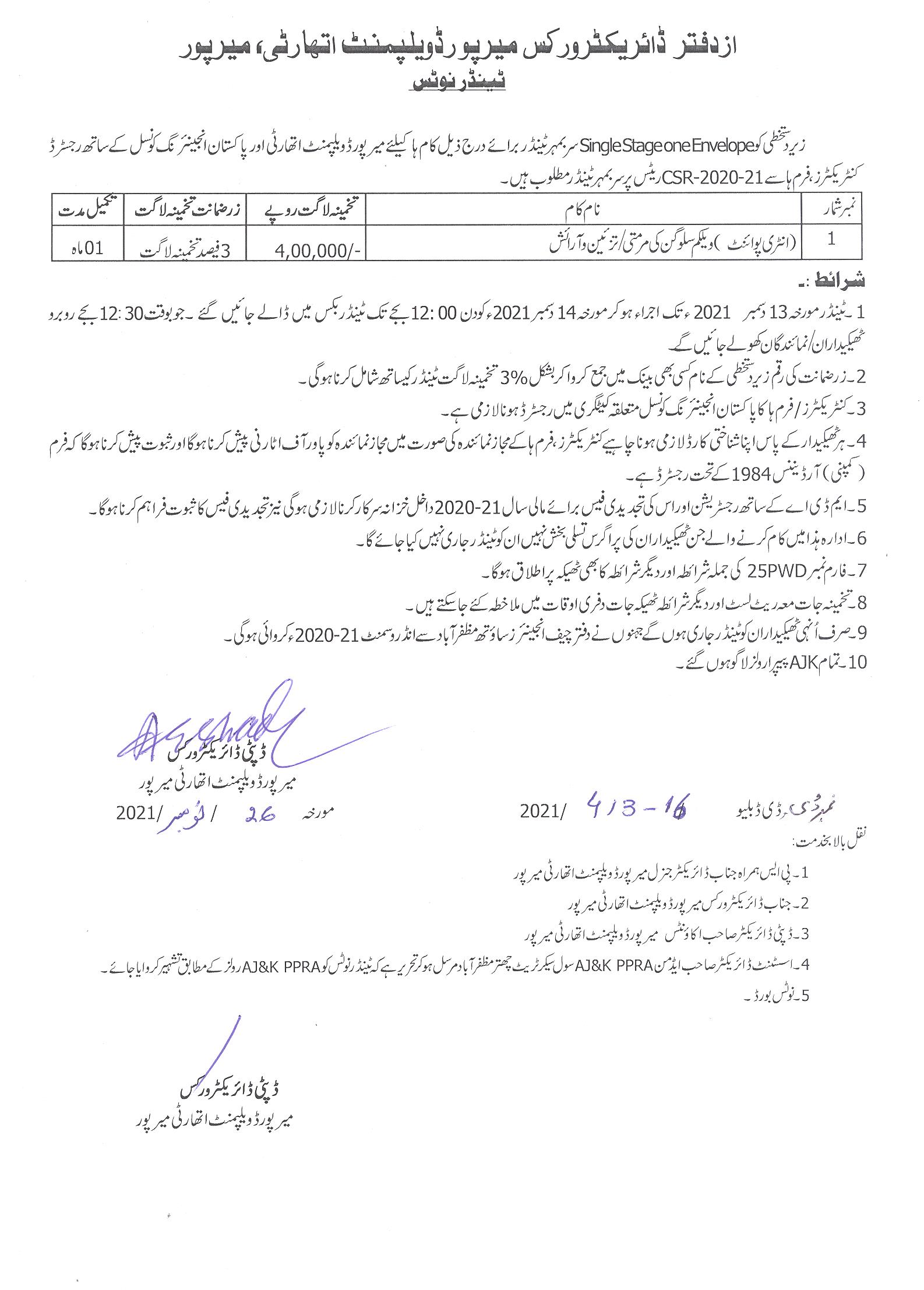 24-11-2021 | 11-12-2021 | Close | C&W | Highways Division Mirpur | Download File |