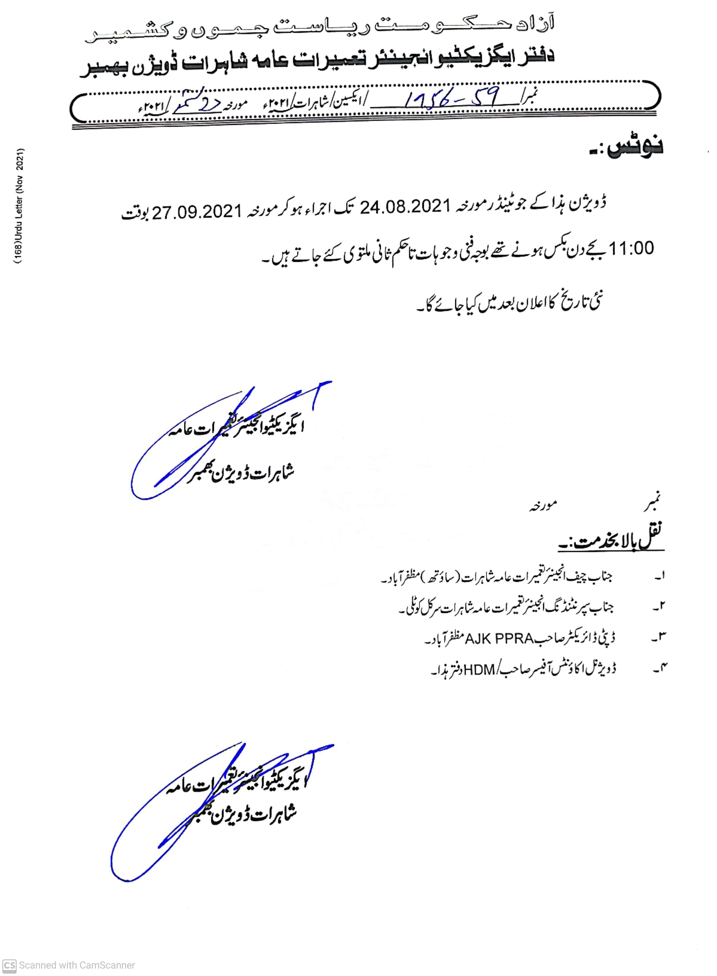24-08-2021 | 27-09-2021 | Close | C&W | Highways Division Bhimber | Download File