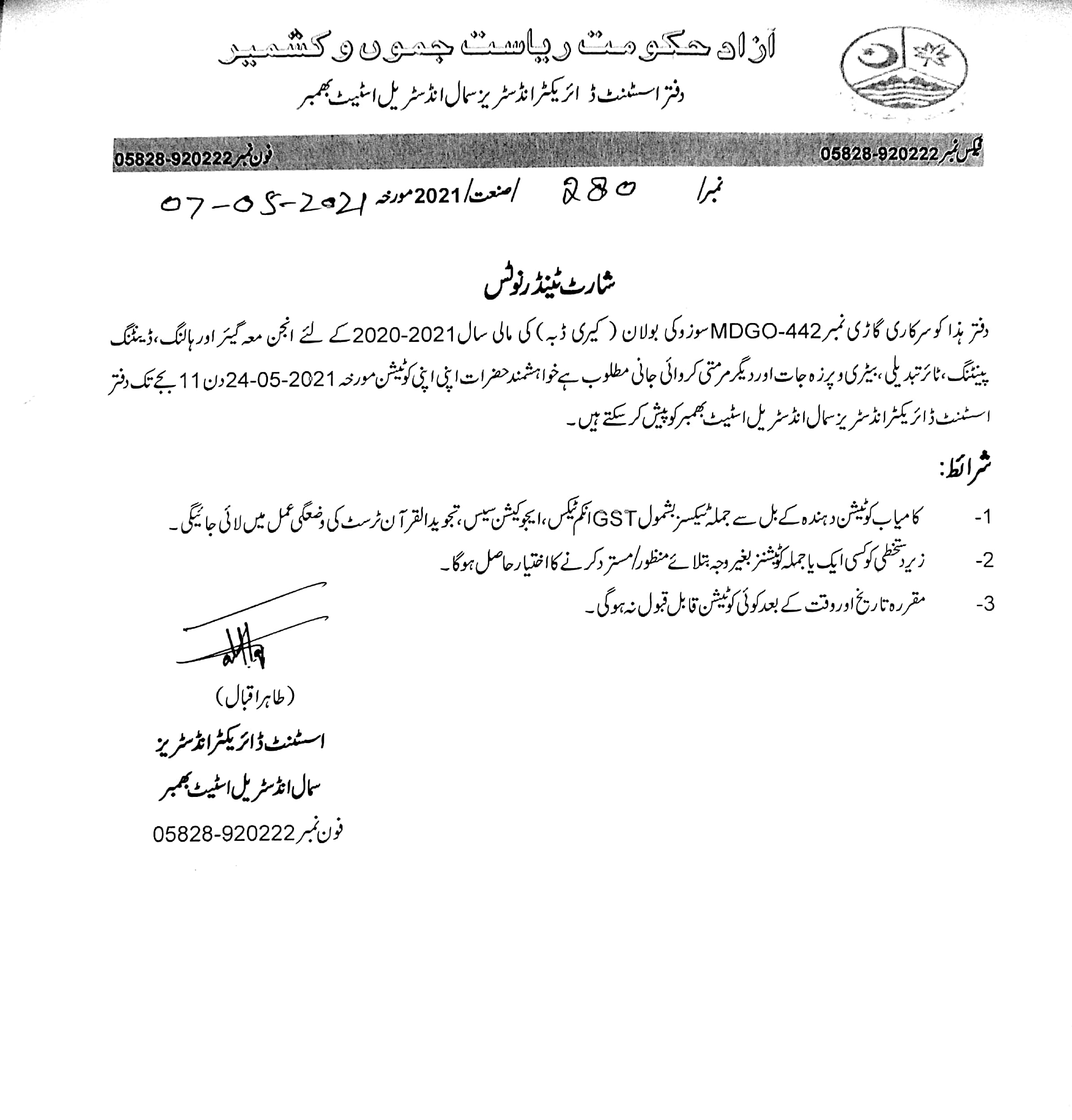 07-05-2021 | 24-05-2021 | Close | Industries | Industries Bhimber | Download File |