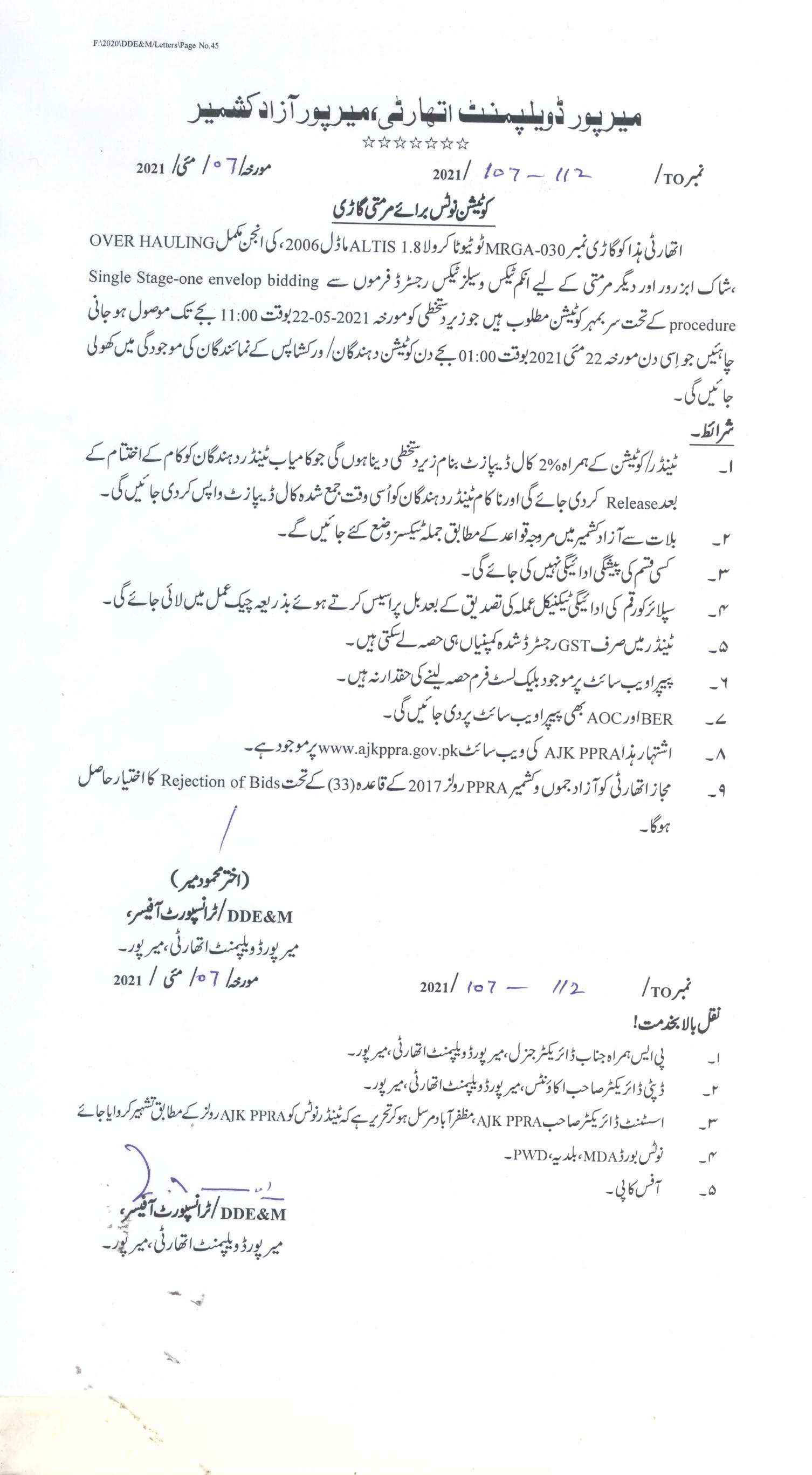 07-05-2021 | 22-05-2021 | Close | Development Authorities | Mirpur Development Authority | Download File |