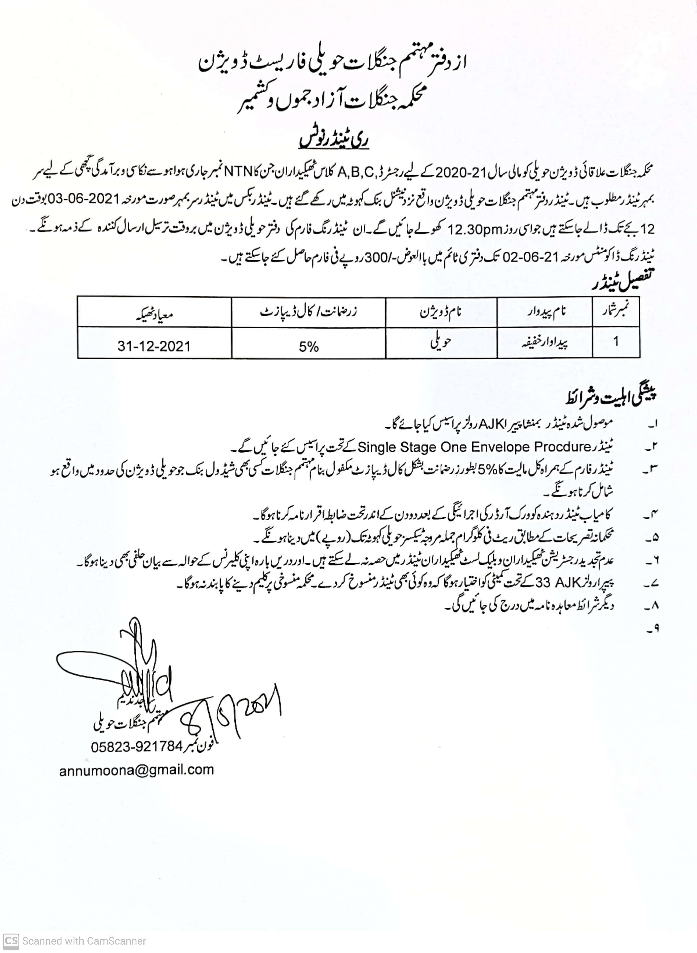 07-05-2021 | 25-05-2021 | Close | Forest | Forest Muzaffarabad | Download File