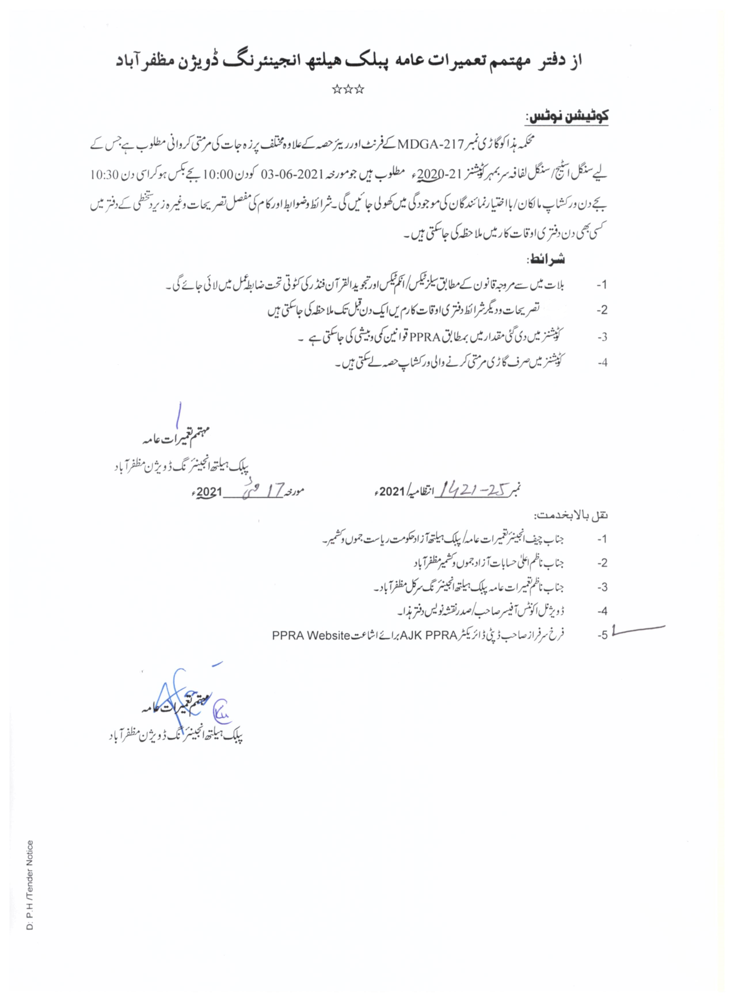 06-05-2021 | 25-05-2021 | Close | PP&H | PP&H Muzaffarabad | Download File