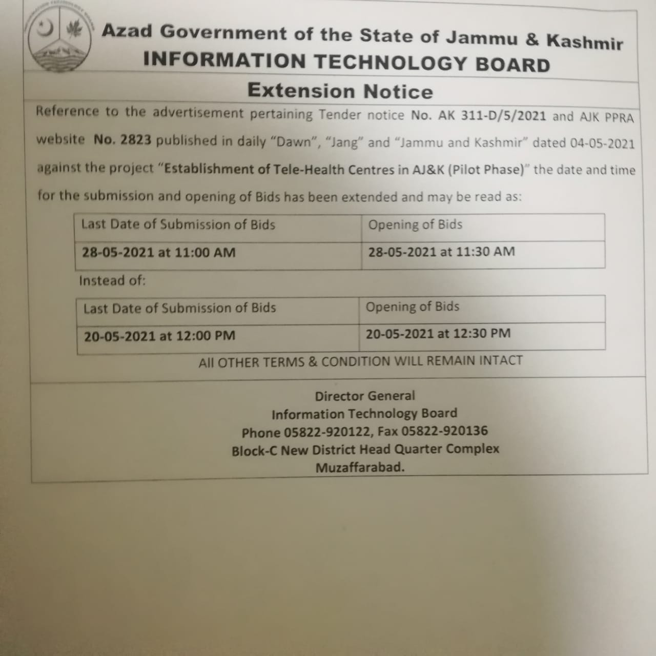 03-05-2021 | 20-05-2021 | Close | PP&H | PP&H Muzaffarabad | Download File |