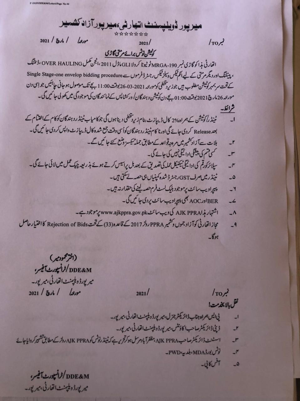 15-03-2021 | 27-03-2021 | Close | Development Authorities | Mirpur Development Authority | Download File |