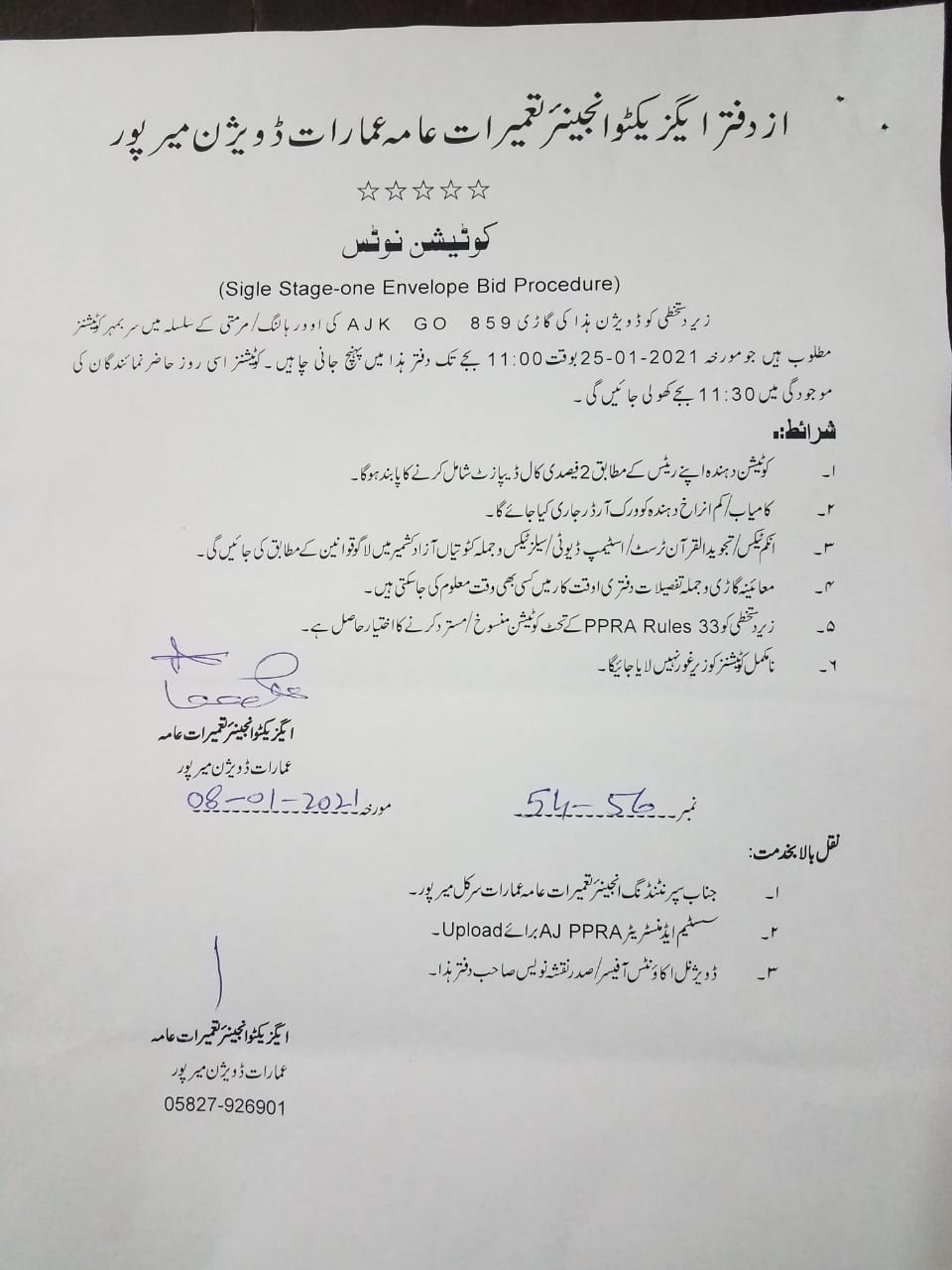 11-01-2021 | 25-01-2021 | Close | C&W | Highways Division Muzaffarabad | Download File |