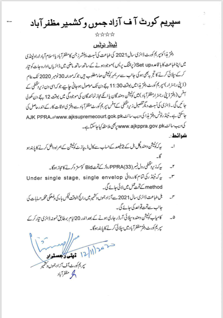 12-11-2020 | 30-11-2020 | Close | AJK Courts | Supreme Court Muzaffarabad | Download File |