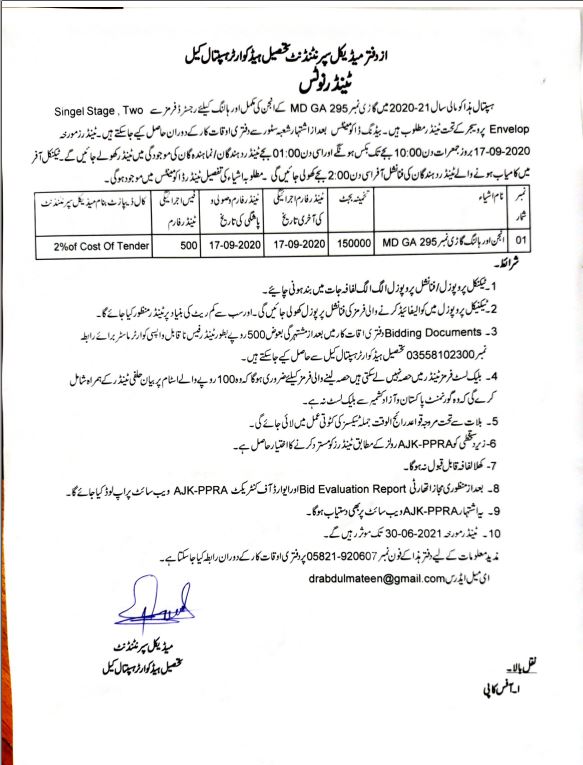 07-09-2020 | 17-09-2020 | Close | Development Authorities | Kotli Development Authority | Download File |
