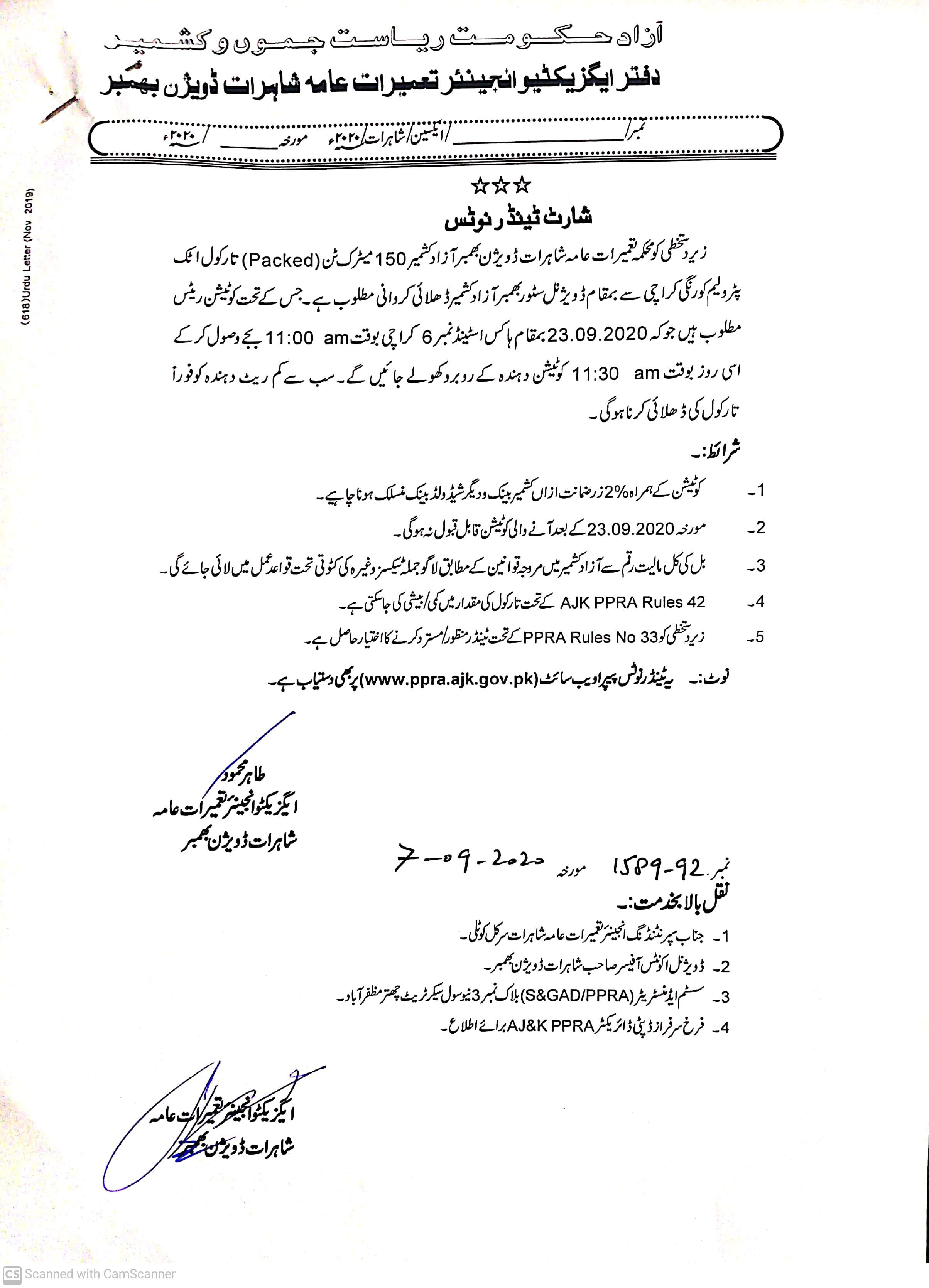 03-09-2020 | 15-10-2020 | Close | C&W | Highways Division Muzaffarabad | Download File