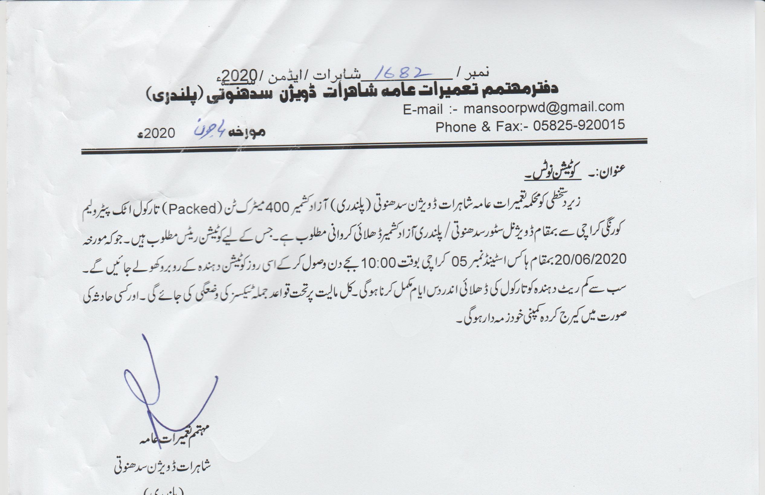 09-06-2020 | 23-06-2020 | Close | C&W | Highways Division Muzaffarabad | Download File |