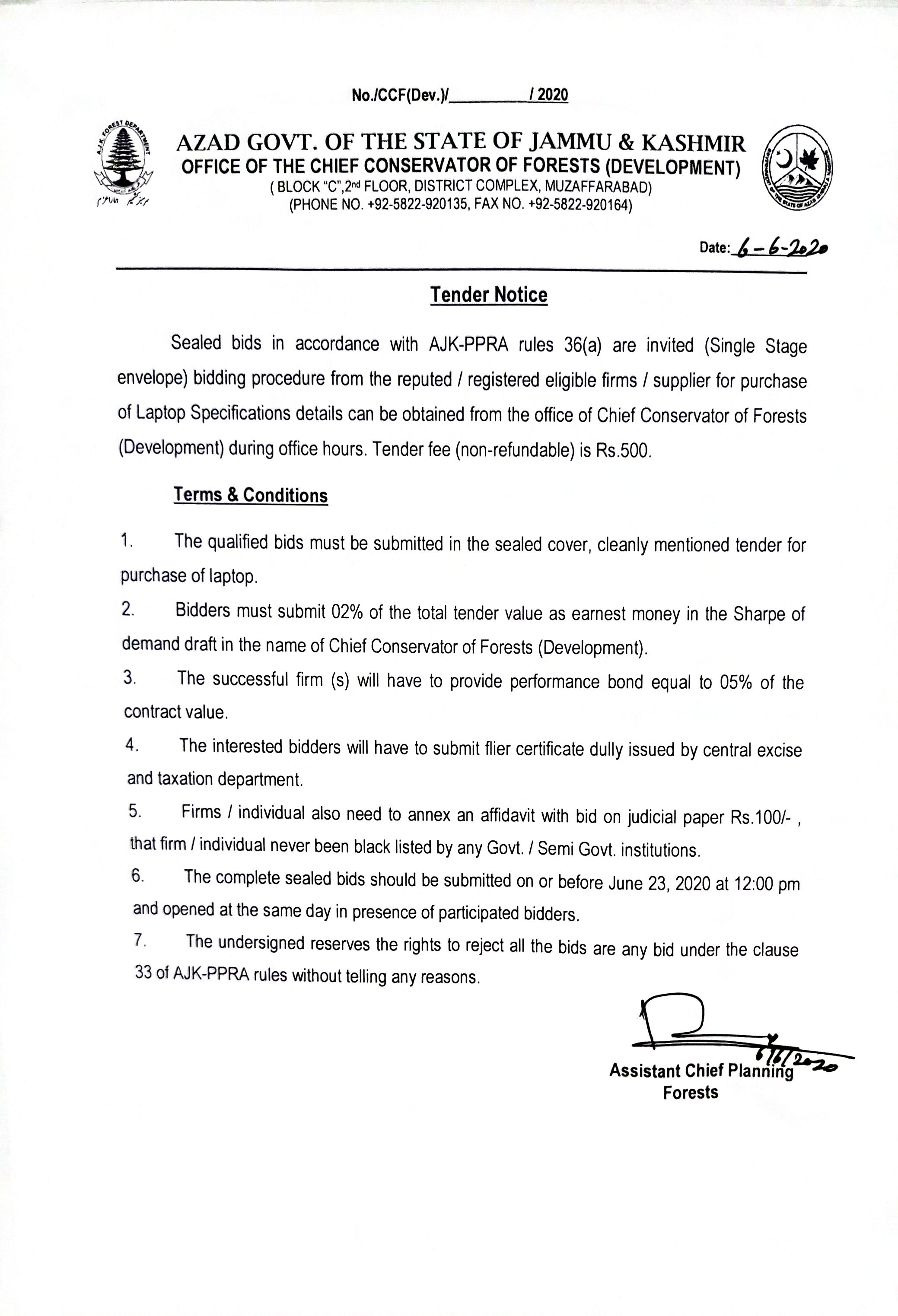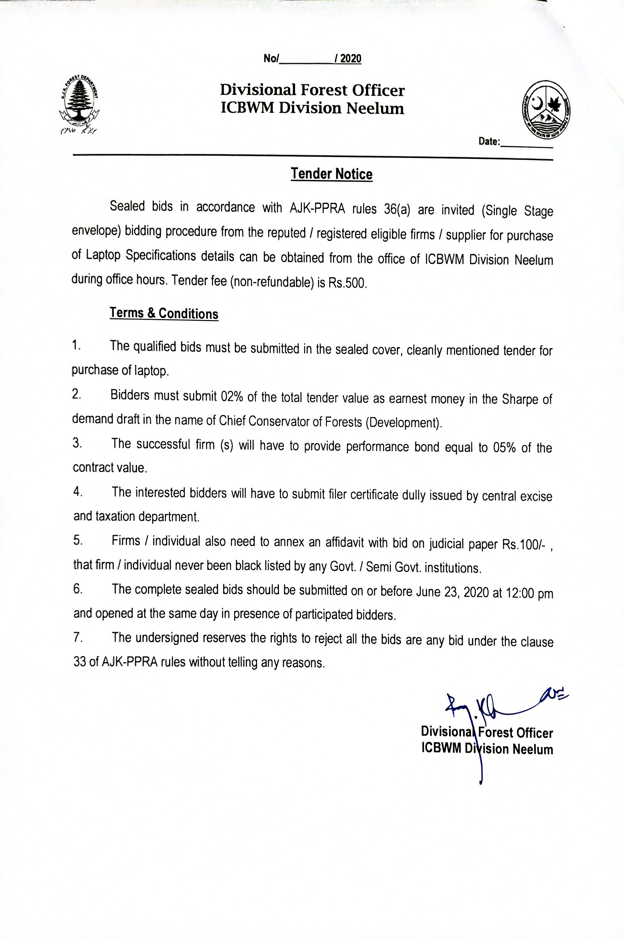 04-06-2020 | 17-06-2020 | Close | Forest | Forest Muzaffarabad | Download File