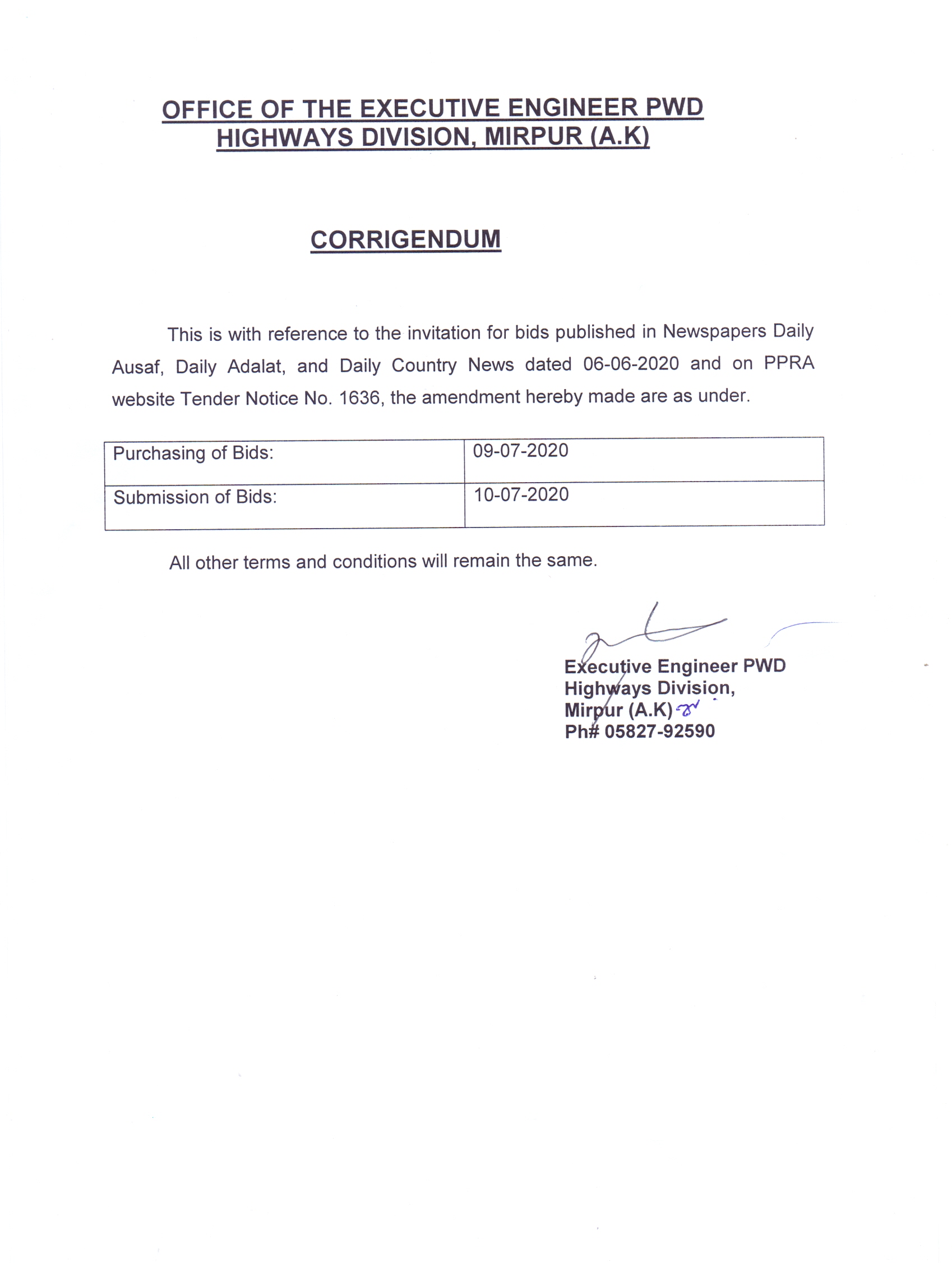 09-06-2020 | 22-06-2020 | Close | C&W | Highways Division Mirpur | Download File