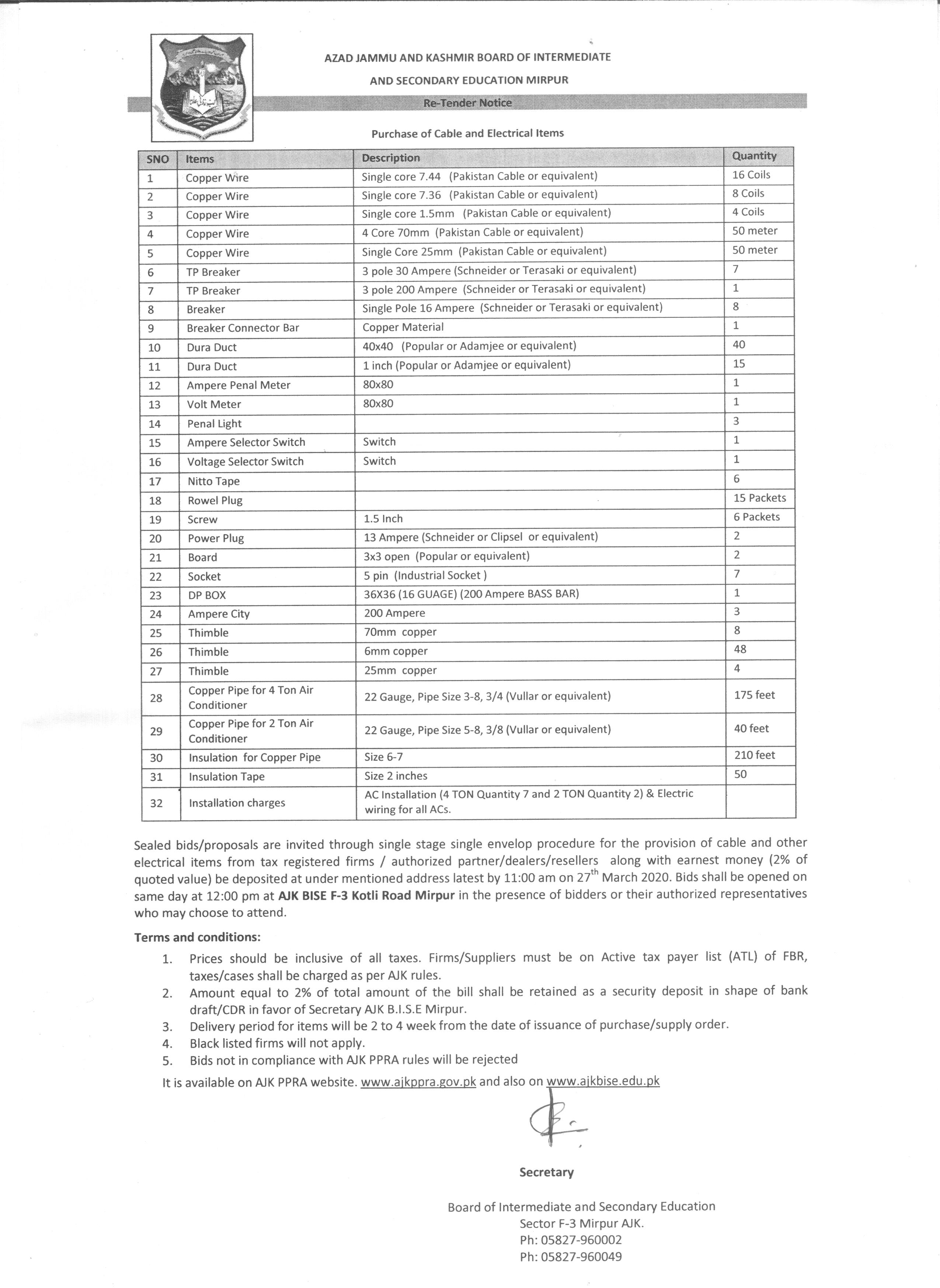 19-03-2020 | 28-03-2020 | Close | Energy and Water Resource | Electricity Muzaffarabad | Download File |