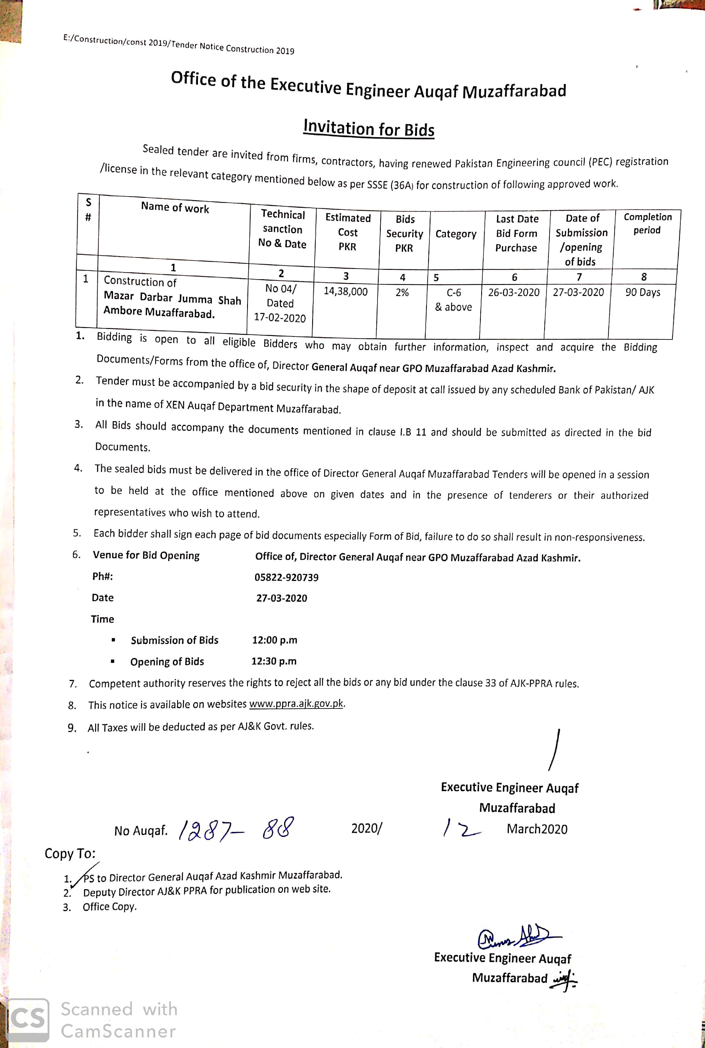 13-03-2020 | 27-03-2020 | Close | Religious Affairs | Auqaf Muzaffarabad | Download File