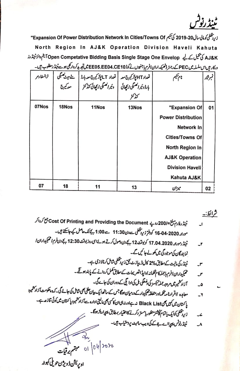 20-03-2020 | 07-04-2020 | Close | Energy and Water Resource | Electricity Muzaffarabad | Download File |