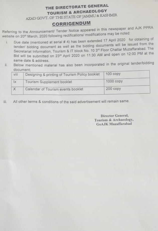 20-03-2020 | 23-04-2020 | Close | Tourism and Archaeology | Tourism and Archaeology Muzaffarabad | Download File
